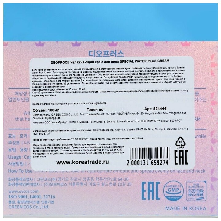 | Коллекция | Deoproce Special Water Plus Cream |