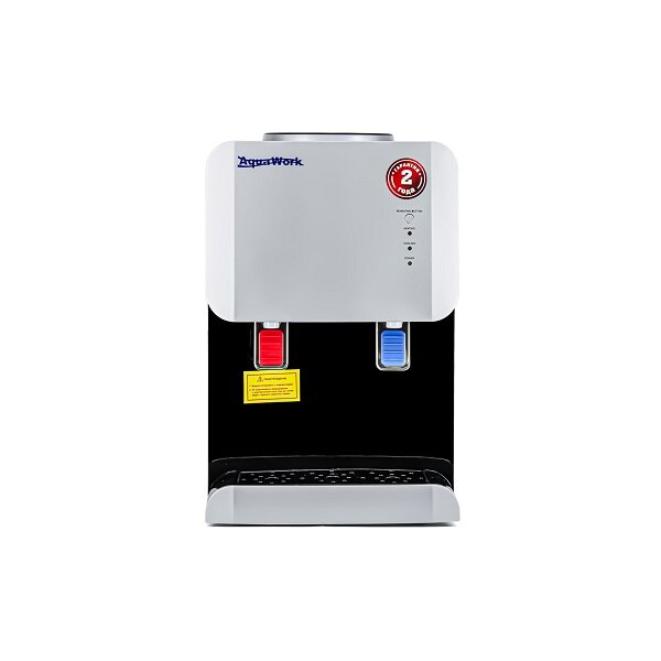 Настольный кулер для воды Aqua Work 105-TDR с нагревом, электронной системой охлаждения и кнопкой принудительного запуска подогрева. Нагрев 700 Вт - не менее 7 литров воды в час. Охлаждение 68 Вт - 0.7 литра в час. Стальной корпус. Допускается установка стаканодержателей любых типов. 2 краника с удлиненными лопатками. Кнопка принудительного нагрева. Обычный аппарат нагревает воду до 92-95 градусов, отключается и ждет, пока в горячем баке вода не остынет. При таком алгоритме работы, увы, есть шанс налить в кружку воду с температурой меньше 90.