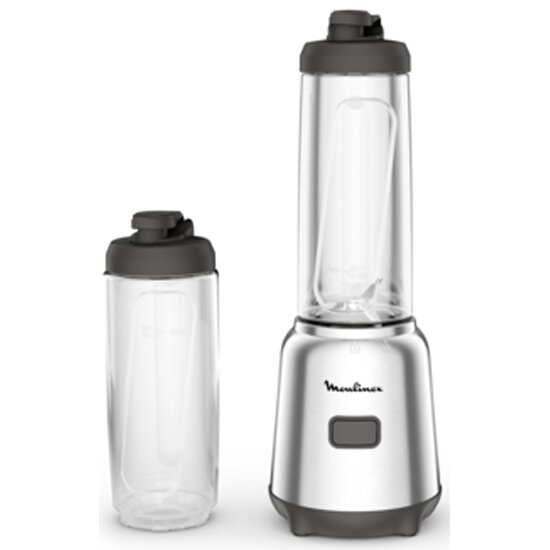 Мини-блендер Mix & Move от Moulinex объединяет в себе превосходную производительность и удобный формат для комфортного смешивания ингредиентов и наслаждения любимыми напитками, куда бы вы ни отправились. В комплект входят 2 удобные бутылки из тритана, в которых можно приготовить смузи и сразу взять его с собой. Благодаря компактному дизайну устройство и аксессуары удобно хранить, а съемные лезвия облегчают очистку после каждого использования. Откройте для себя идеальный персональный блендер с мощностью 300 Вт и удобными функциями.