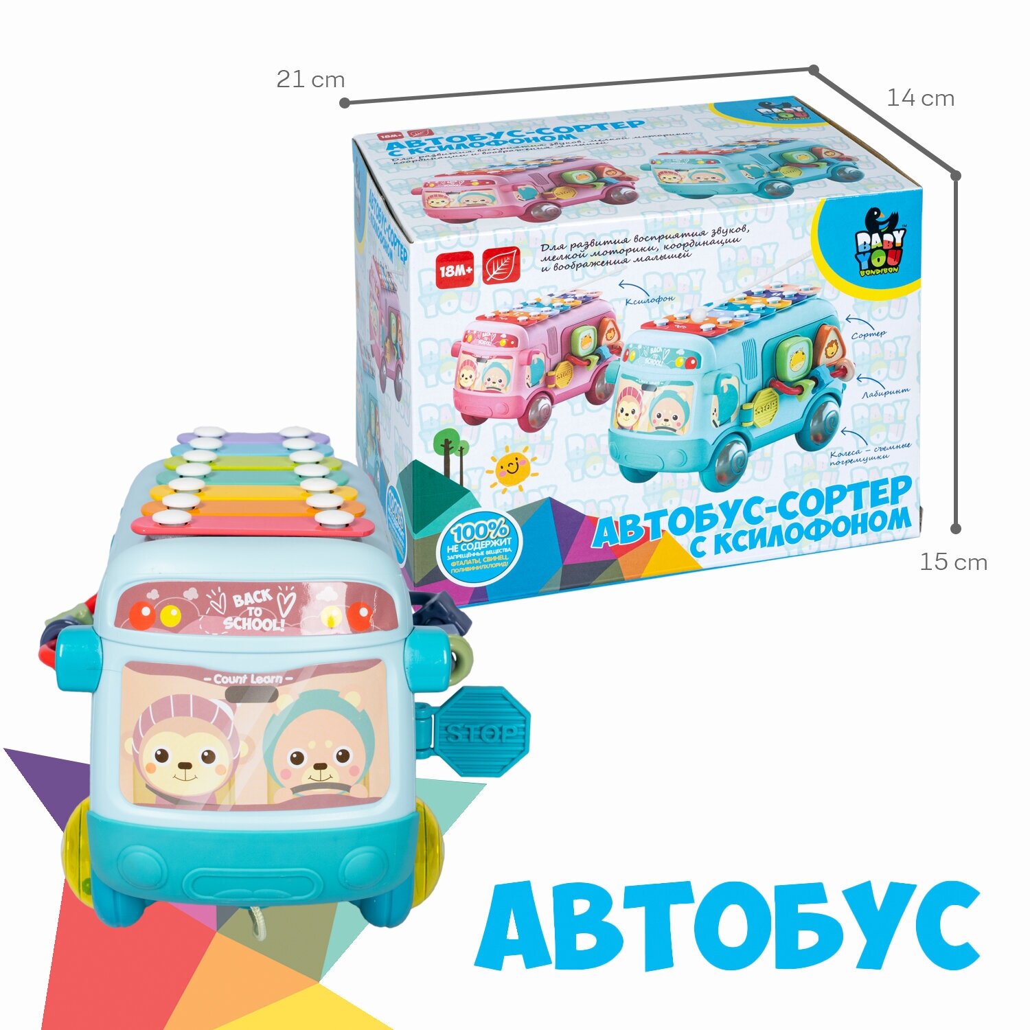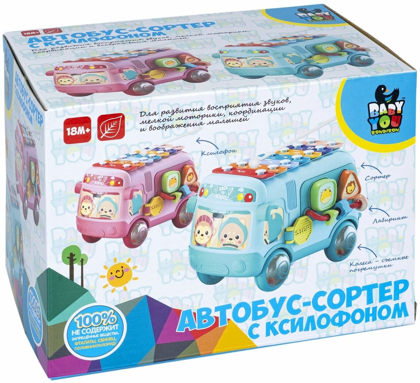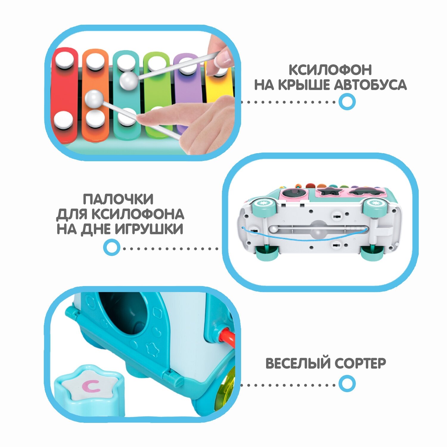 Игрушка-сортер развивающая Автобус с ксилофоном голубой Bondibon