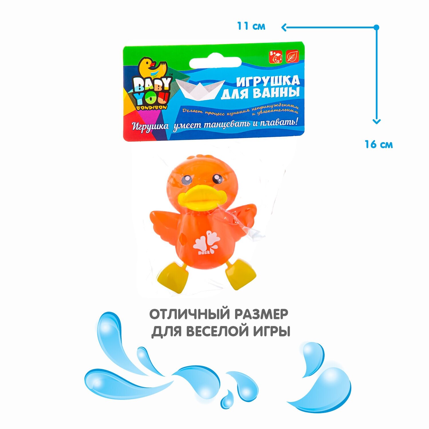 Увлекательная игрушка для ванной Bondibon Утенок предназначена для игры малыша в процессе купания. У игрушки имеется встроенный заводной механизм, благодаря которому забавный утенок умеет плавать в воде и даже танцевать.