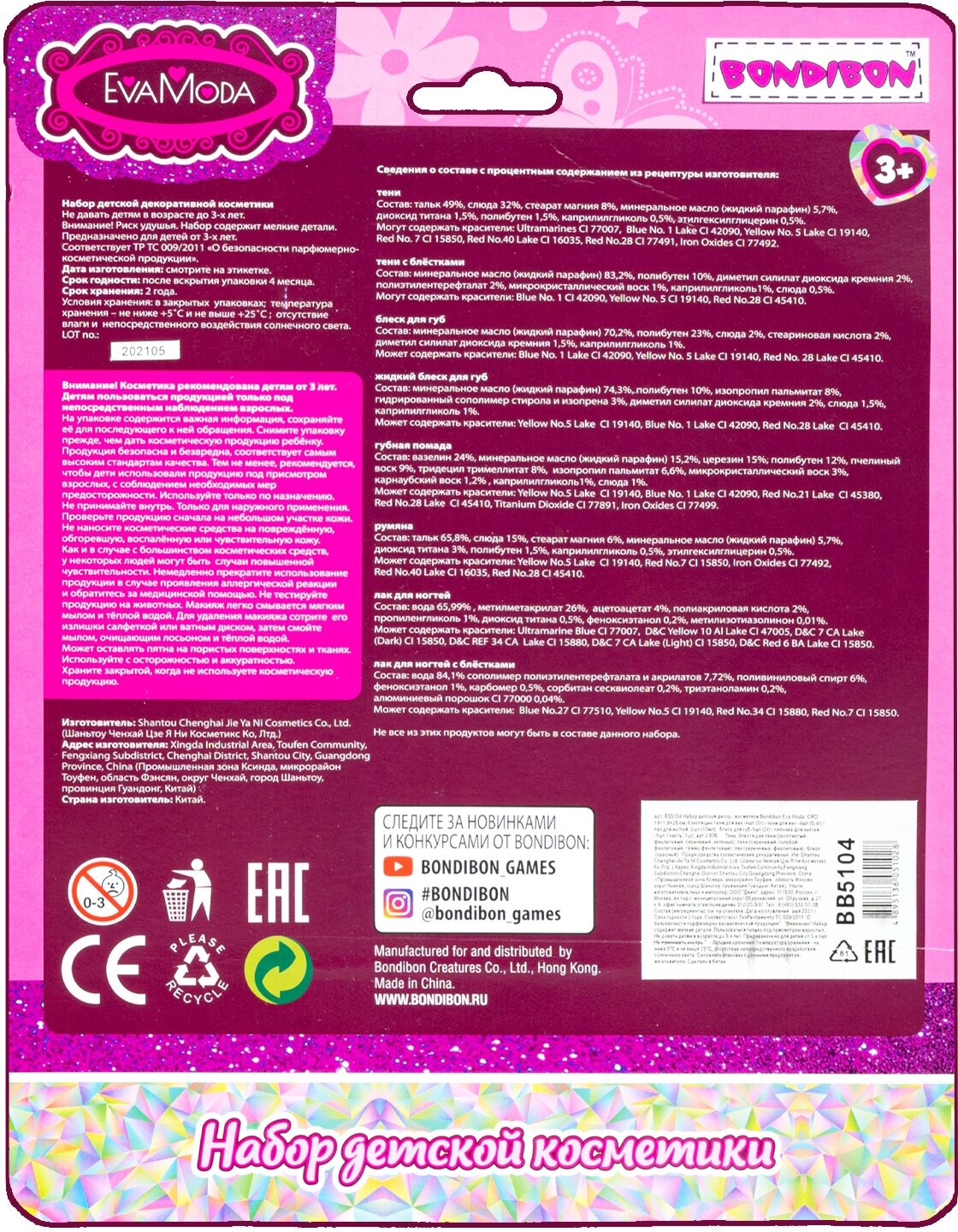 | Серия | Косметика EvaModa для девочек |