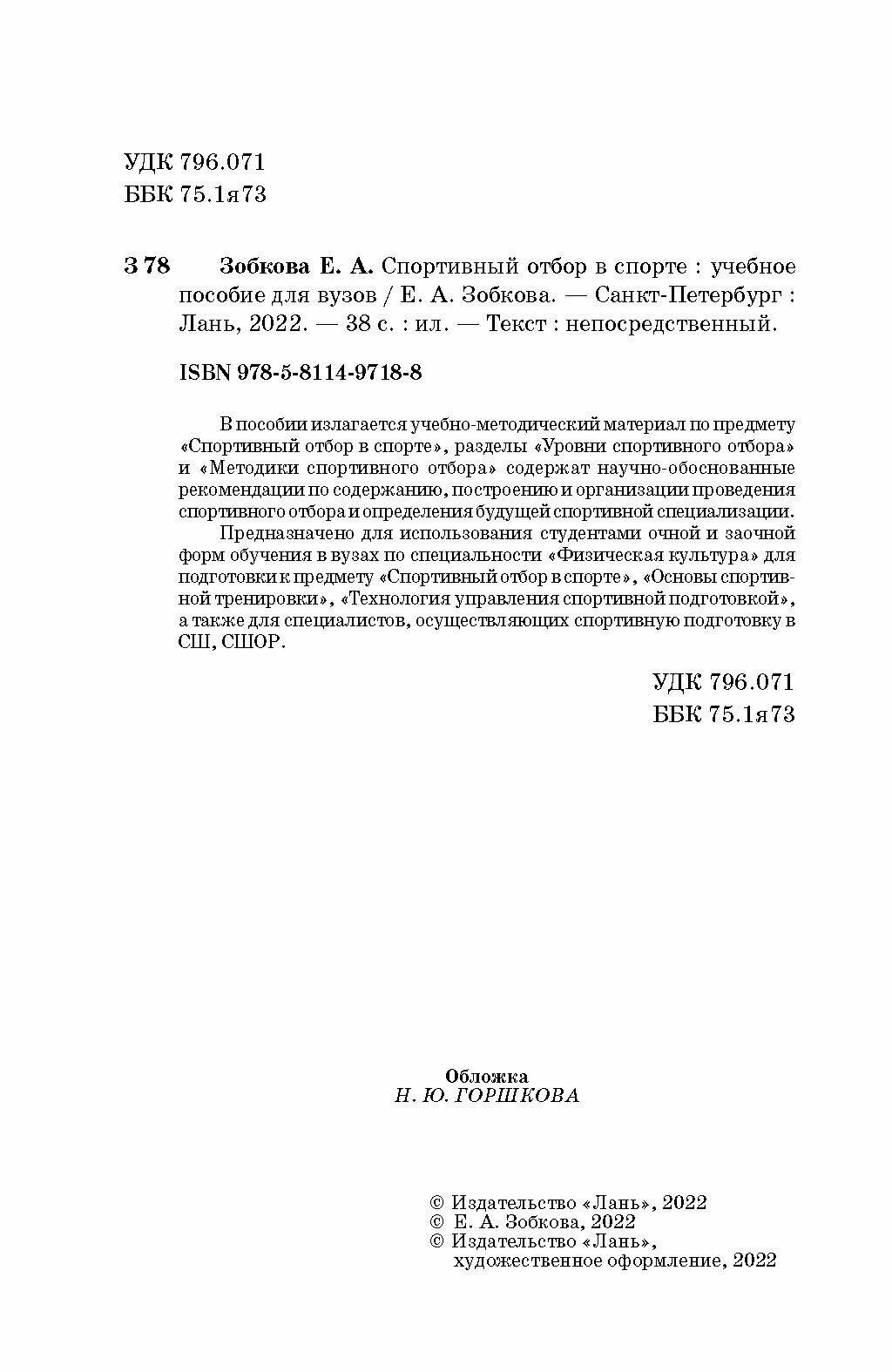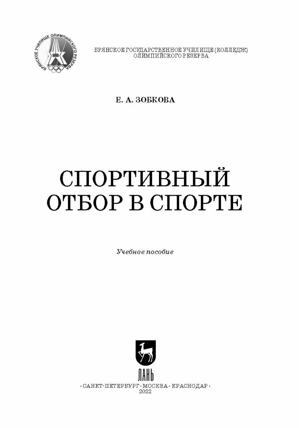 Спортивный отбор в спорте (Е. А. Зобкова); Издательство ЛАНЬ, 2022