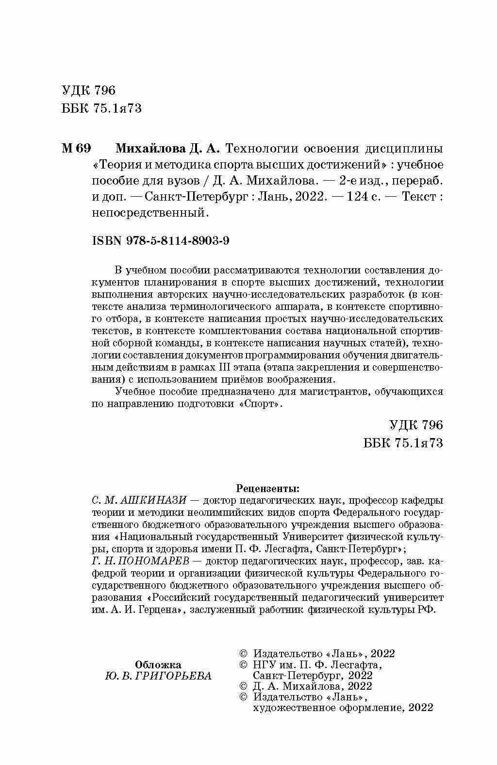Технологии освоения дисциплины «Теория и методика спорта высших достижений» (Д. Михайлова); Издательство ЛАНЬ, 2022