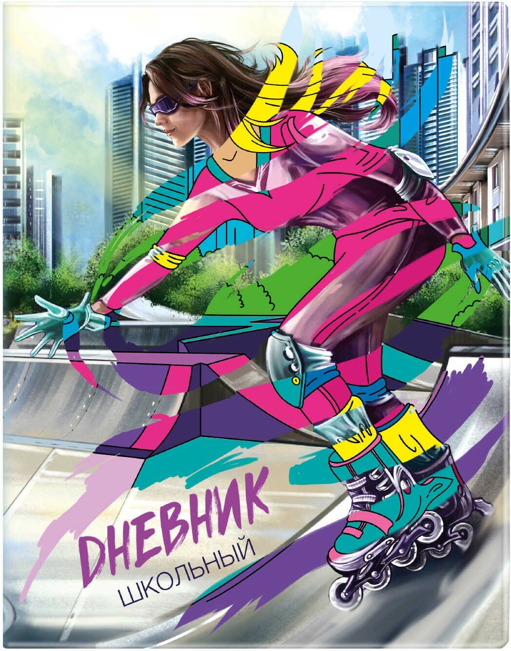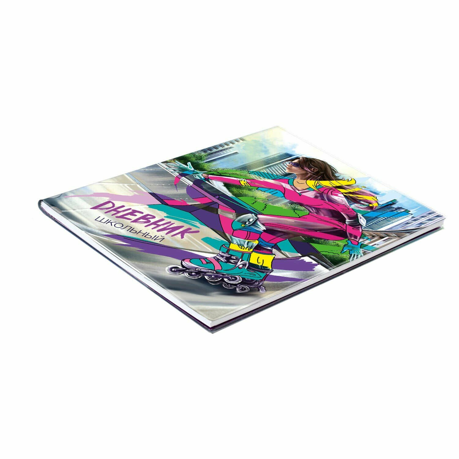 Дневник школьный, РОЛИКИ формат А5+, 48 л., мягкий переплёт, суперобложка с полноцветной печатью, углы обложки прямые, углы блока прямые, одно ляссе, красочность блока: печать в одну краску, красочность форзаца: печать пантоном. Блок: бумага - белый офсет, 80 г/м?, справочный материал.