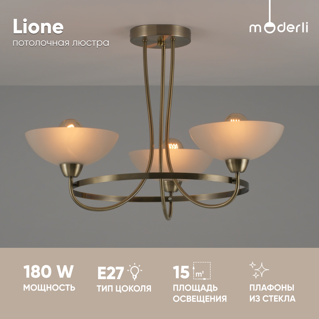 Люстра потолочная Moderli V1200-3C Lione 3E1460W античная латунь белый Hoff