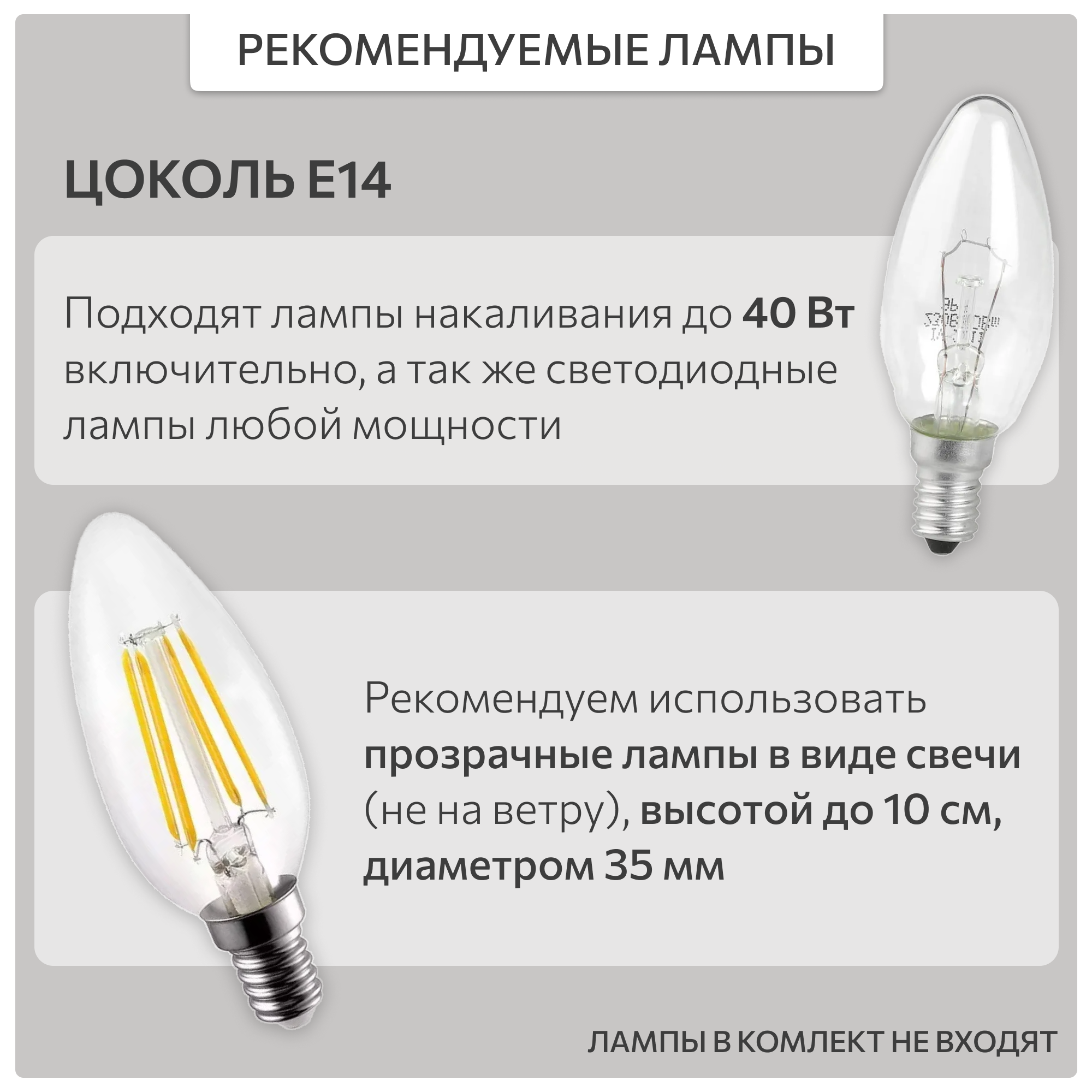 Бренд CitiLux оснастил эту модель лампами с цоколем E14 и максимальной мощностью 40 Ватт.