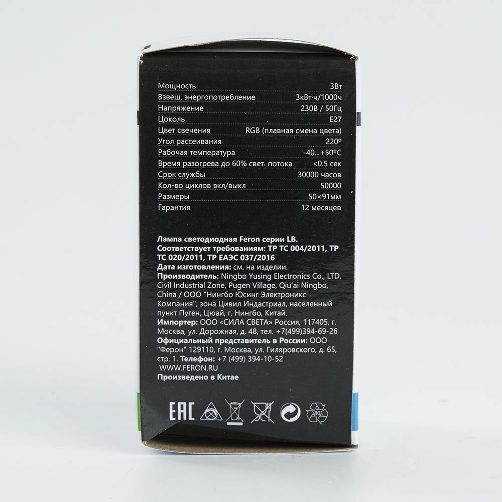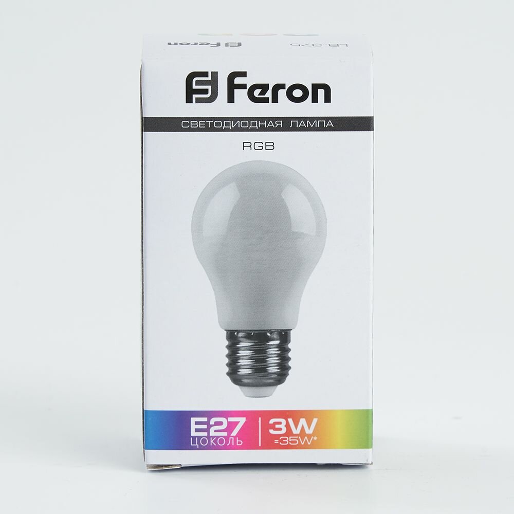 На сегодняшний день товар «Лампа светодиодная Feron E27 3W RGB матовая LB-375 38118 LB-375» можно купить с кешбеком в 1 магазине: Яндекс.Маркет