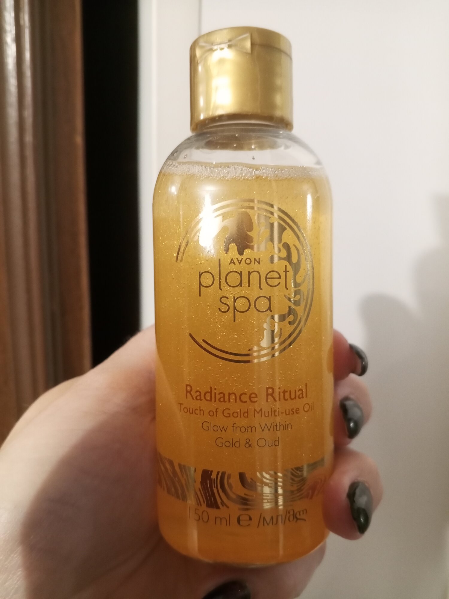 Масло очень-очень шиммерное, а точнее- сплошной шиммер, разбавленный маслом, цвет яркий золотой (радует, что это натуральная слюда). Если намазываться, как обычным увлажняющий маслом - сплошная арабская ночь, золотая кожа, огромное сияние. Возможно, на вечерние мероприятия такой плотный золотой шиммер будет смотреться интересно. Ну либо когда хочется почувствовать себя персонажем восточной сказки.