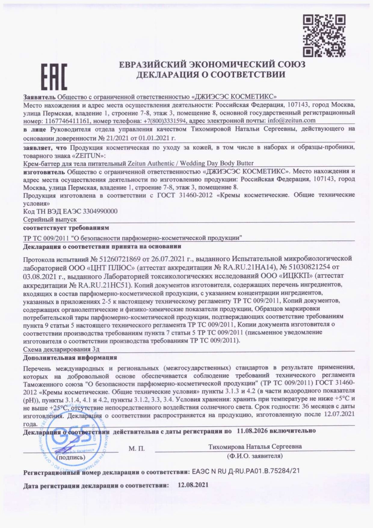 | Полное наименование | масло для тела Zeitun Wedding Day взбитое |