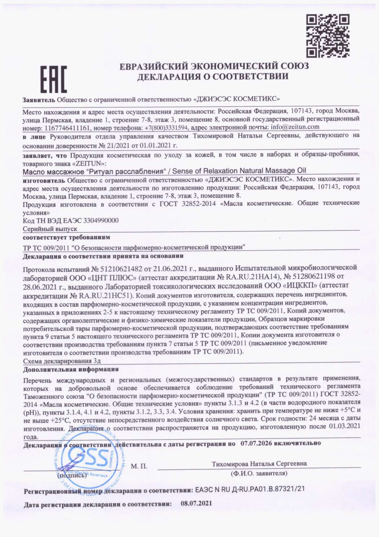 Zeitun Массажное масло "Ритуал расслабления" 110 мл (Zeitun ) (ЭХ99989427174)