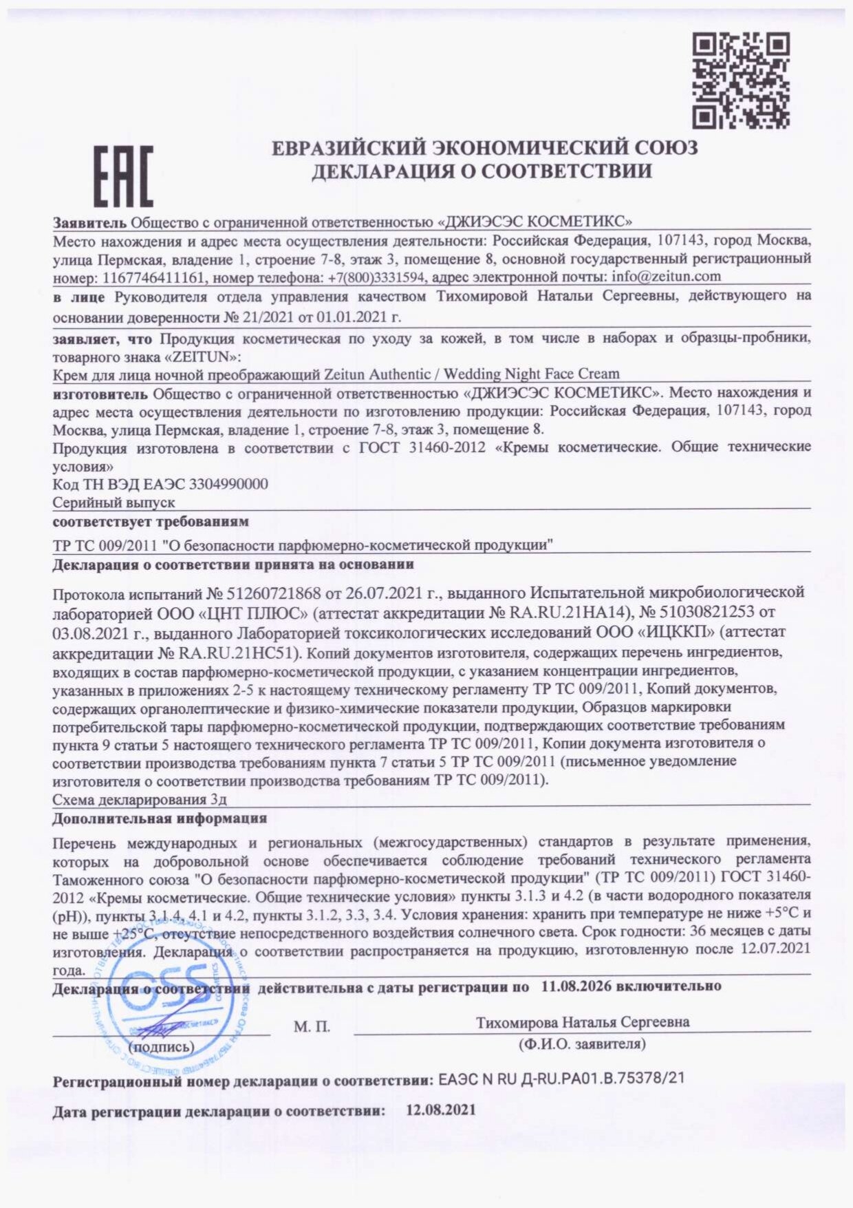 Zeitun Ночной питательный крем Wedding Day 100 мл (Zeitun ) (ЭХ99989427189)