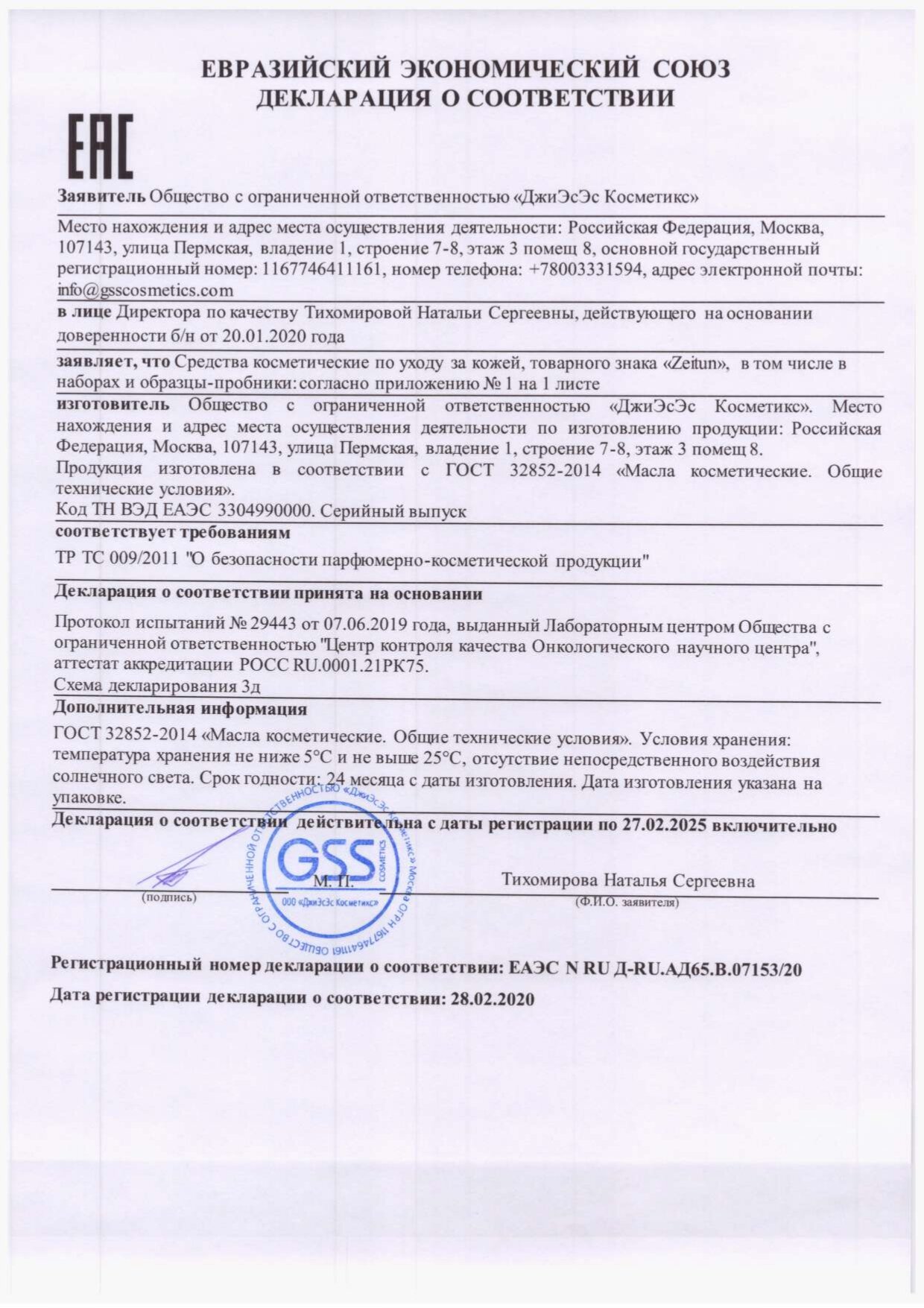 | Полное наименование | миндальное масло Zeitun Almond Natural Oil |