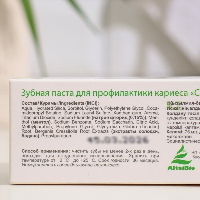 AltaiBio Зубная паста для профилактики кариеса "Солодка-бадан" 75 мл (AltaiBio ) (ЭХ99989427488)