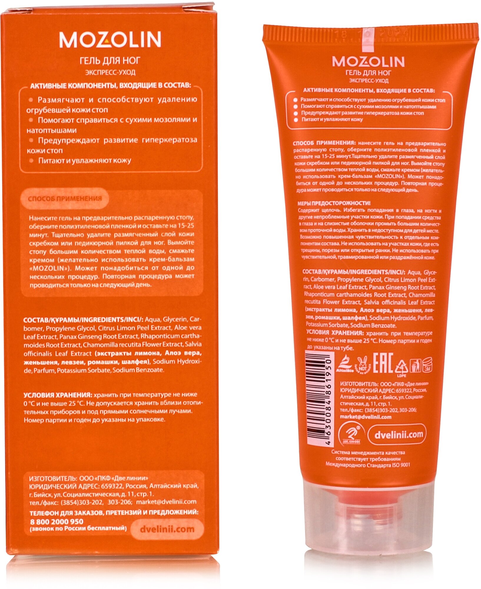 Нанесите гель на предварительно распаренную стопу, оберните полиэтиленовой пленкой и оставьте на 15-25 минут. Тщательно удалите размягченный слой кожи скребком или педикюрной пилкой для ног. Вымойте стопу большим количеством теплой воды, смажьте кремом (желательно использовать крем-бальзам Mozolin).
