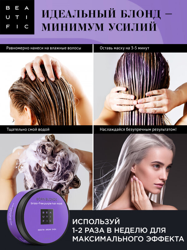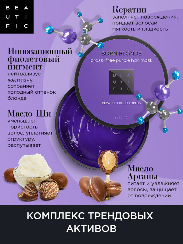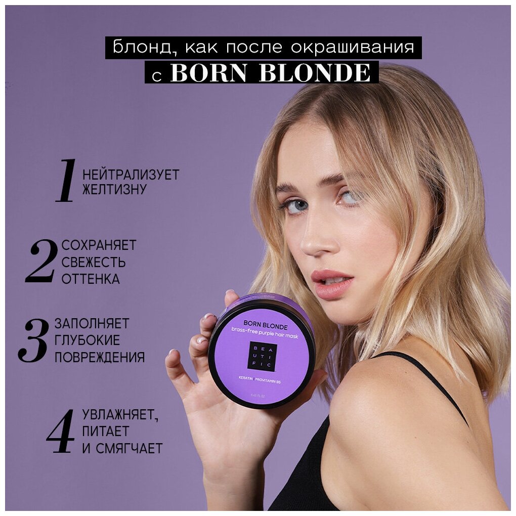 Beautific Фиолетовая маска для нейтрализации желтизны Born Blonde Brass-Free Purple 250 мл (Beautific ) (ЭХ99989427093)