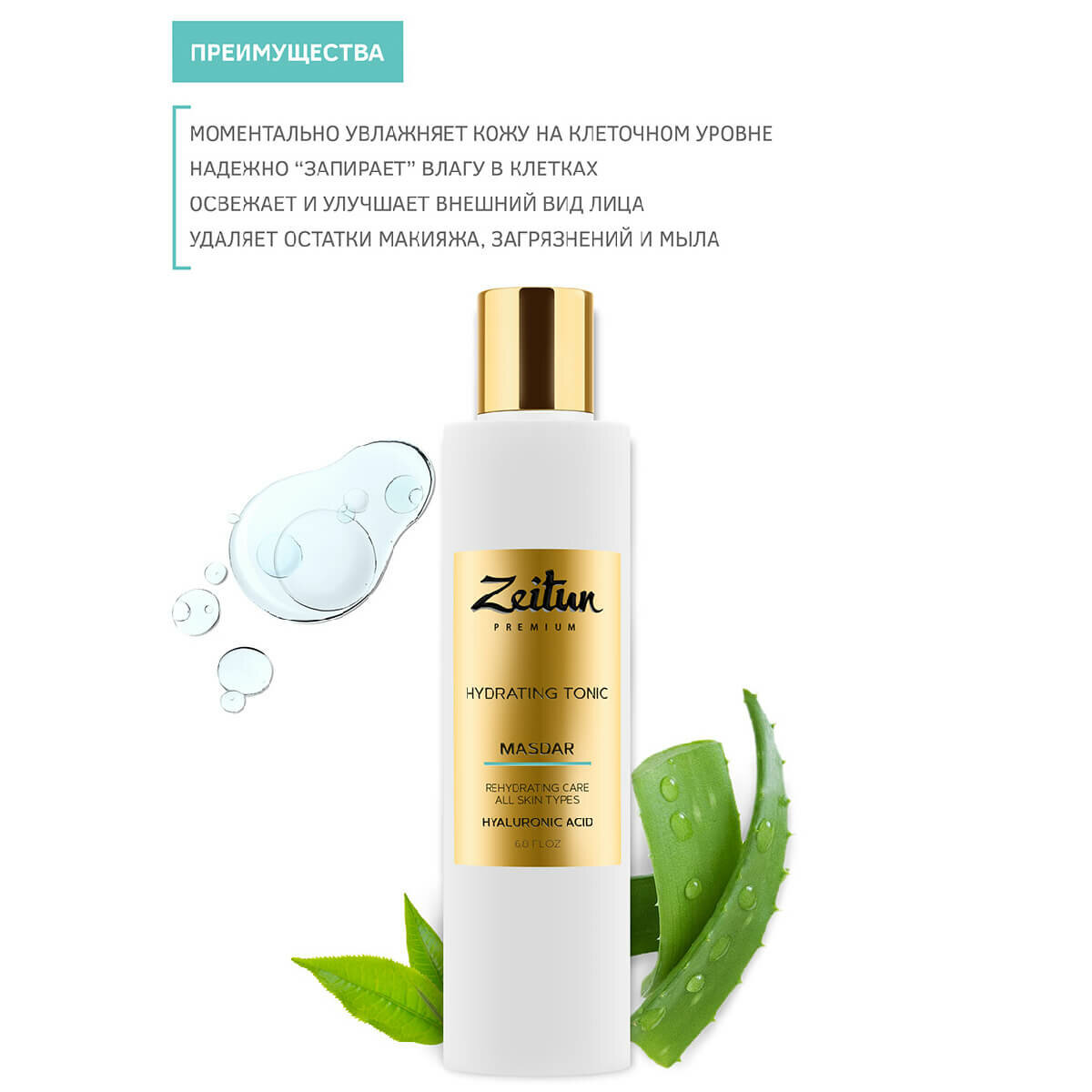 Zeitun Увлажняющий тоник для всех типов кожи лица Masdar с гиалуроновой кислотой 200 мл (Zeitun ) (ЭХ99989427195)