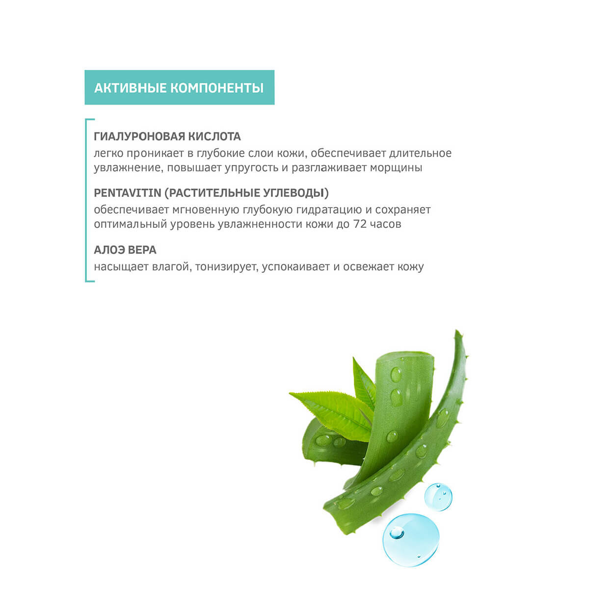 - низкомолекулярная гиалуроновая кислота и запатентованный комплекс углеводов позволяют сохранять кожу увлажненной до 48 часов