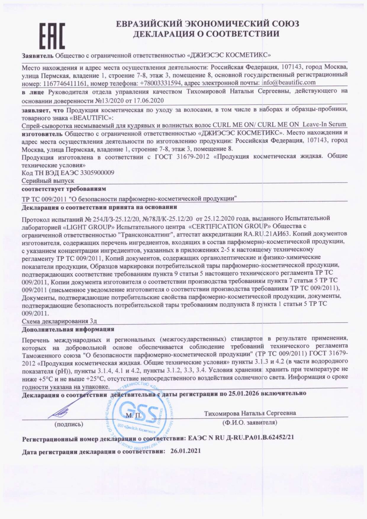 Beautific Несмываемая сыворотка-уход для кудрявых и волнистых волос Curl Me On 150 мл (Beautific ) (ЭХ99989427095)