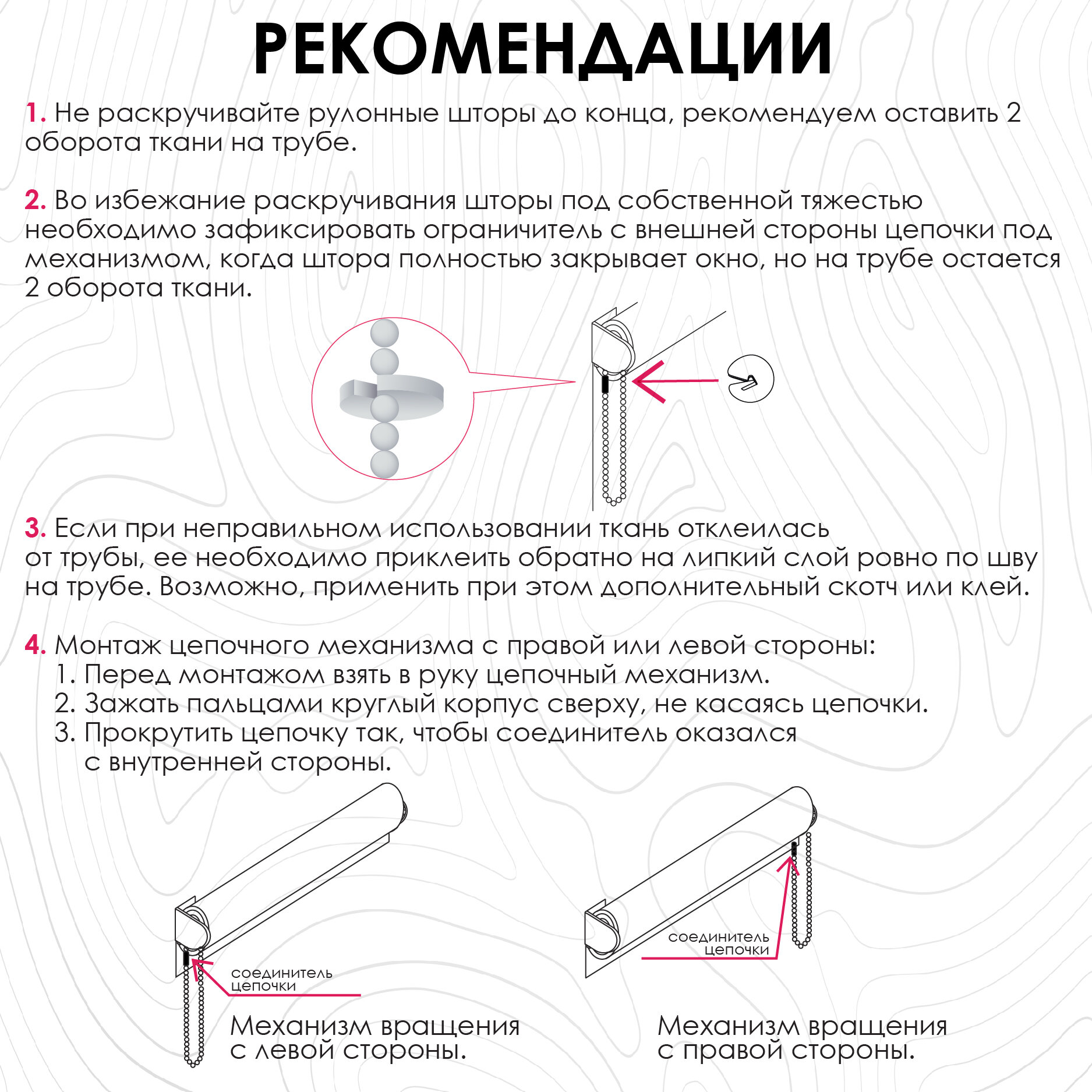 Рулонные шторы Светонепроницаемость 100 % Монтажный комплект прилагается Укроют от полуденного зноя. Текстиль, обрабатывают пропитками с пылеотталкивающими свойствами. Изделие устойчиво к выгоранию, замечательно сочетается с различными типами штори выступает прекрасным дополнением к дизайну интерьера. Легкая установка на все типы окон: без сверления на створку окна и в проём окна на шурупах. Магниты на нижней планке для плотного прилегания к окну. В комплекте: рулонная штора на алюминевой штанге,крепежные элементы и инструкция по установке.