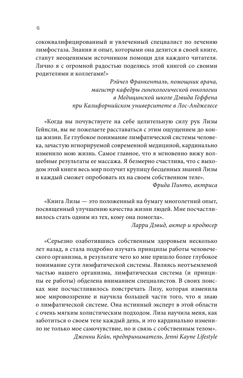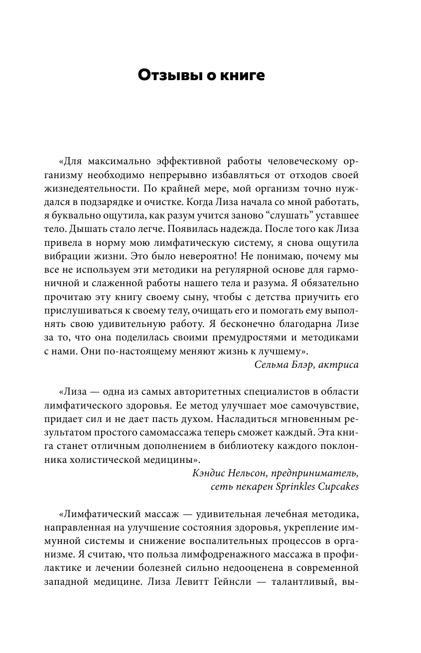 Лимфа омывает каждую клетку нашего тела, наделяя силой и поддерживая его способность к самовосстановлению. Именно поэтому манипуляции с лимфатической системой приносят такие впечатляющие результаты: усталость и отечность уходят, кожа начинает сиять, настроение становится лучше. Эта книга - результат общения с клиентами, у которых в перерывах между сеансами лифодренажного массажа всегда была масса вопросов. Почему после массажа я чувствую себя так хорошо? Можно ли самостоятельно поддерживать здоровье своей лимфатической системы? Как это сделать, и как работает такой массаж? Лимфатическая система удивительно отзывчива, и забота о ней дает невероятный эффект для здоровья. Методика самомассажа и еще несколько простых рекомендаций - это те инструменты, которые не только изменят ваше самочувствие, но и помогут справиться с хроническими заболеваниями.