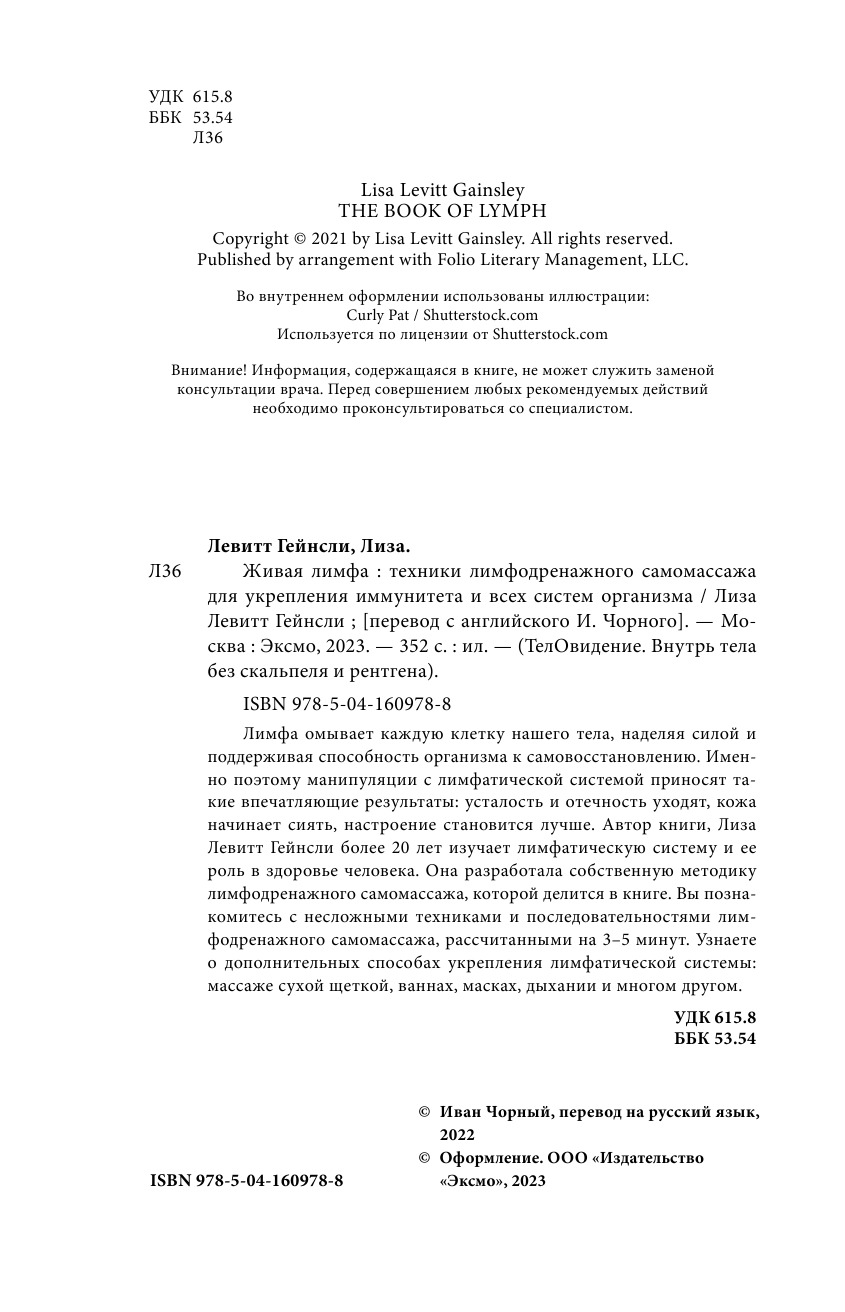 Живая лимфа. Техники лимфодренажного самомассажа для укрепления иммунитета и всех систем организма (Лиза Левитт Гейнсли); Эксмо, 2024