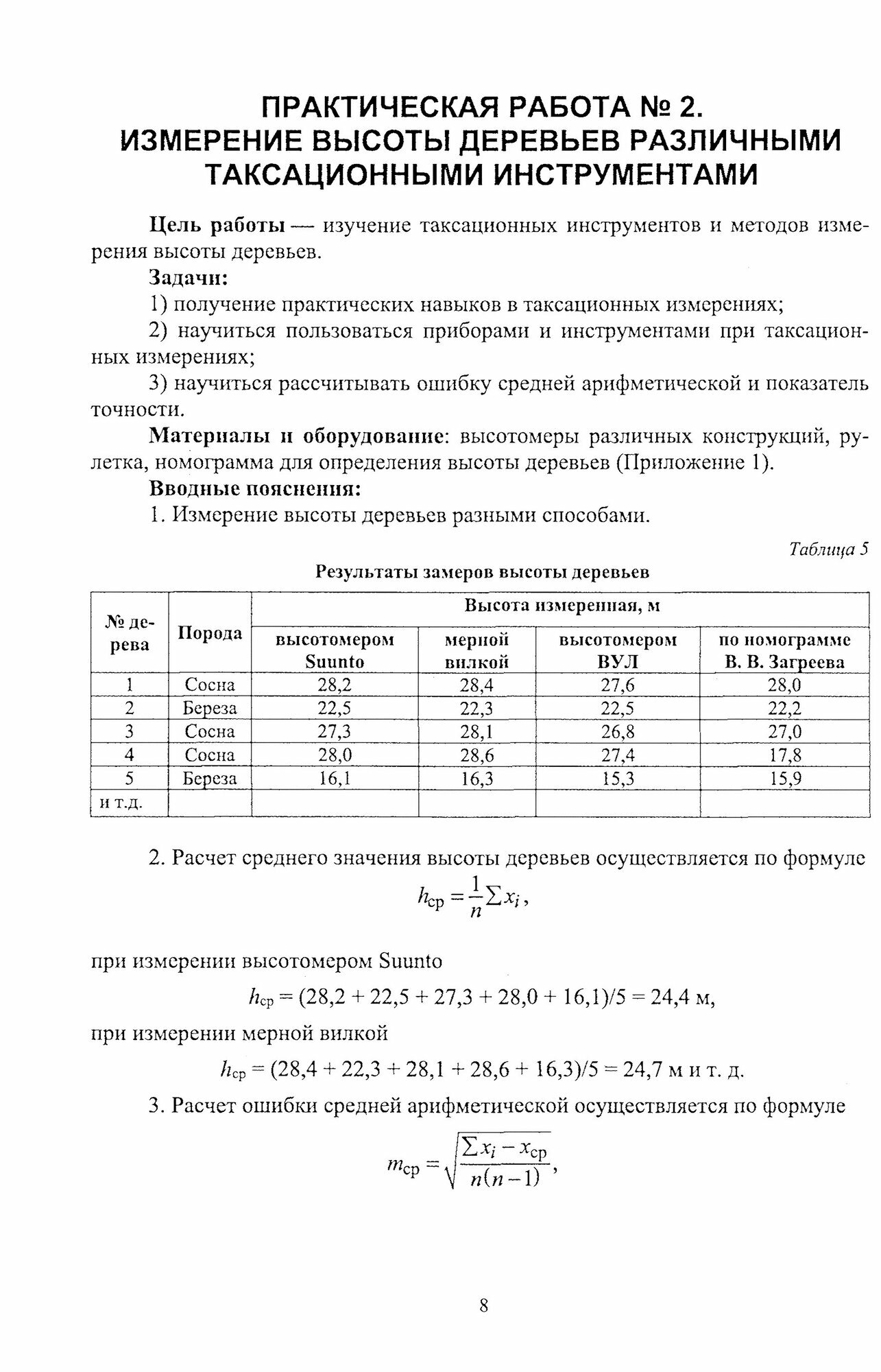 В учебном пособии для выполнения практических работ по дисциплине «Таксация леса» рассмотрены основные лесотаксационные расчеты, применяемые для определения ряда показателей, используемых при таксации леса и лесопродукции. Оно включает одиннадцать практических работ по основным разделам лесной таксации. В начале каждой работы поставлены расчетные задачи, которые необходимо решить. В двух первых работах расчеты проводятся по измерениям, полученным бригадой студентов непосредственно в лесном насаждении. Все остальные расчетные работы выполняются индивидуально в соответствии с выданным студенту вариантом задания. Пособие разработано для 32 вариантов. Исходные данные находятся в приложениях. В пособии приводятся примеры расчетов и оформления работ