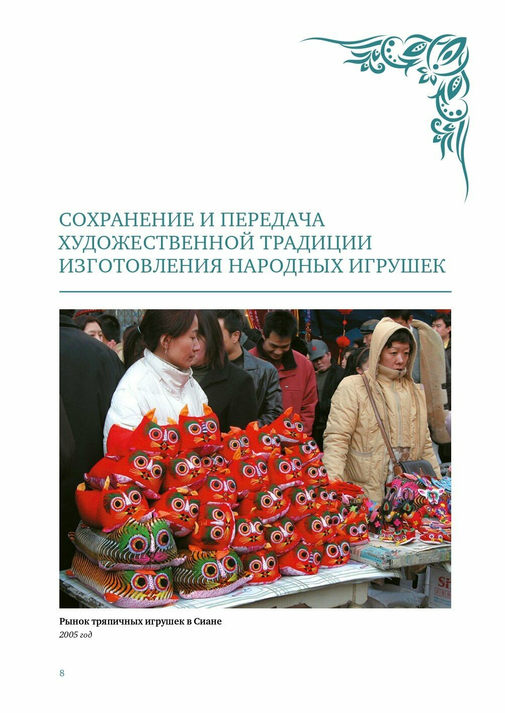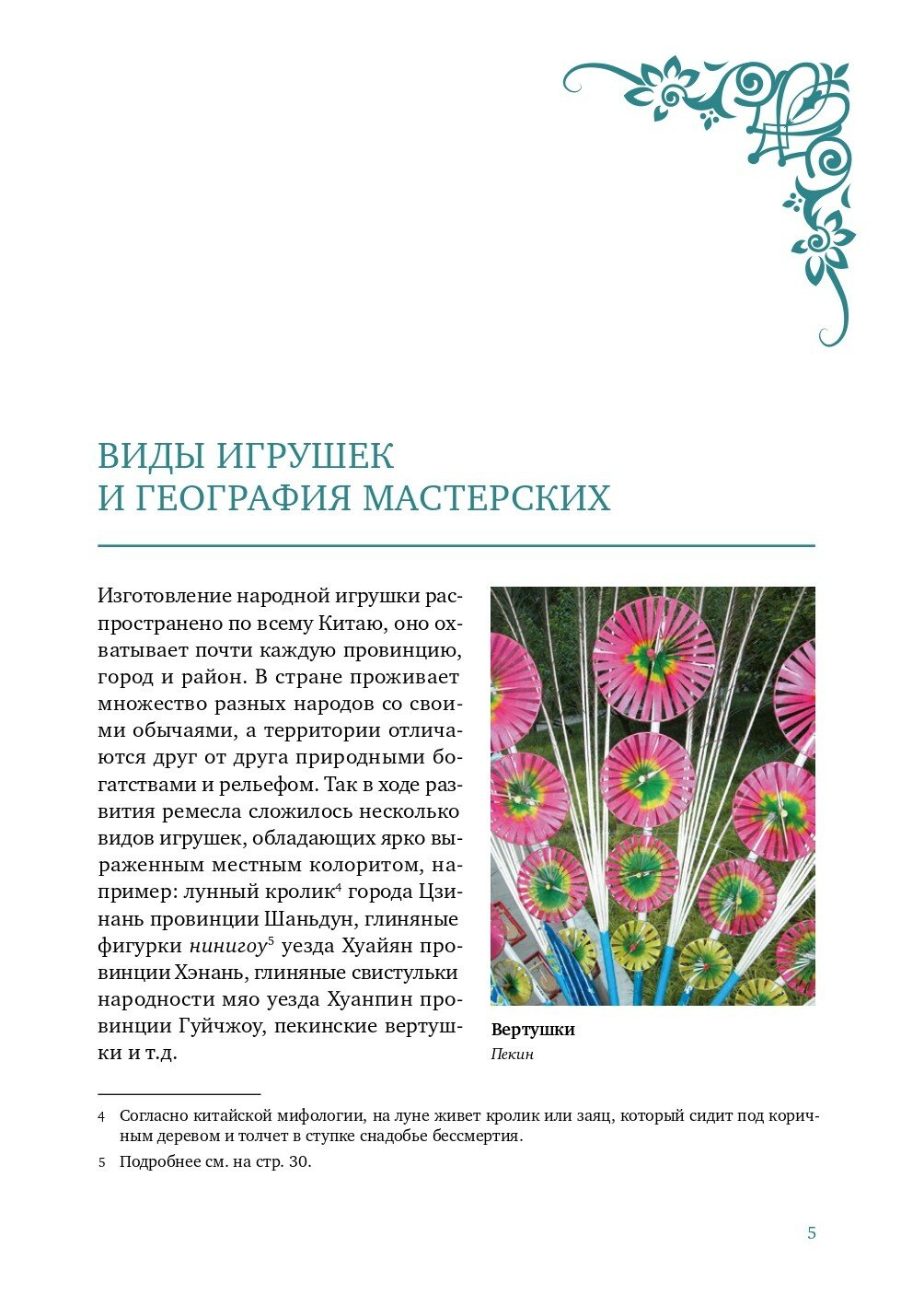 Книга о народных игрушках Китая. Приятнной неожиданностью стало, что в такую небольшую по объему (всего 111 стр) китайскому автору Ван Вэю удалось вместить довольно большой объем информации о истории народной китайской игрушки, видах игрушек и характерных особенностях этих изделий народного прикладного искусства каждого из регионов Китая, о традиционных технологиях изготовления народных игрушек из различных материалов. А, иллюстрирующие текст фотографии, которых в книге представлено большое количество погружают нас в уникальную культуру Поднебесной. Часть фотографии сделаны на рынках и ярмарках игрушек различных районов Китая и представляют собой своего рода «фоторепортаж», на них хорошо видно, как тесно переплетаются традиции и современность.