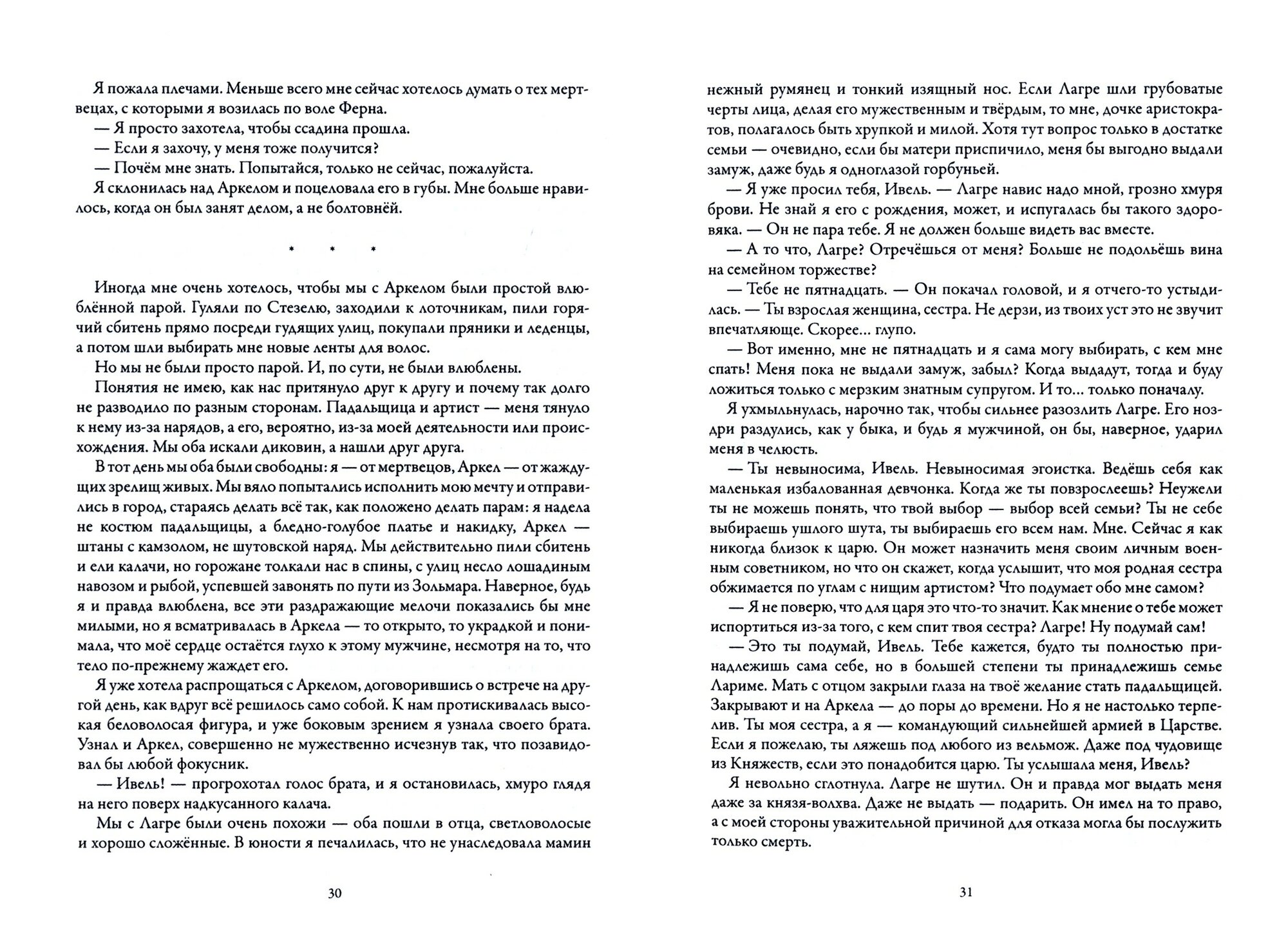 Судя по аннотации, книга про падальщицу Ивель. С данной героиней я понимания не нашла, так как ее слова противоречили действиям, как на мой взгляд. Любила она своего брата или нет, независимая она от семьи или нет (а денежки то у папеньки на расходы берет), хочет она свободы или все рвется в Царство, где ее 100% выдадут замуж? А в Холмолесском княжестве уж она наворотила дел… И вообще на святое посягнула, на Кречета. В каком плане на него и что из этого вышло – это вы уже сами прочитайте.