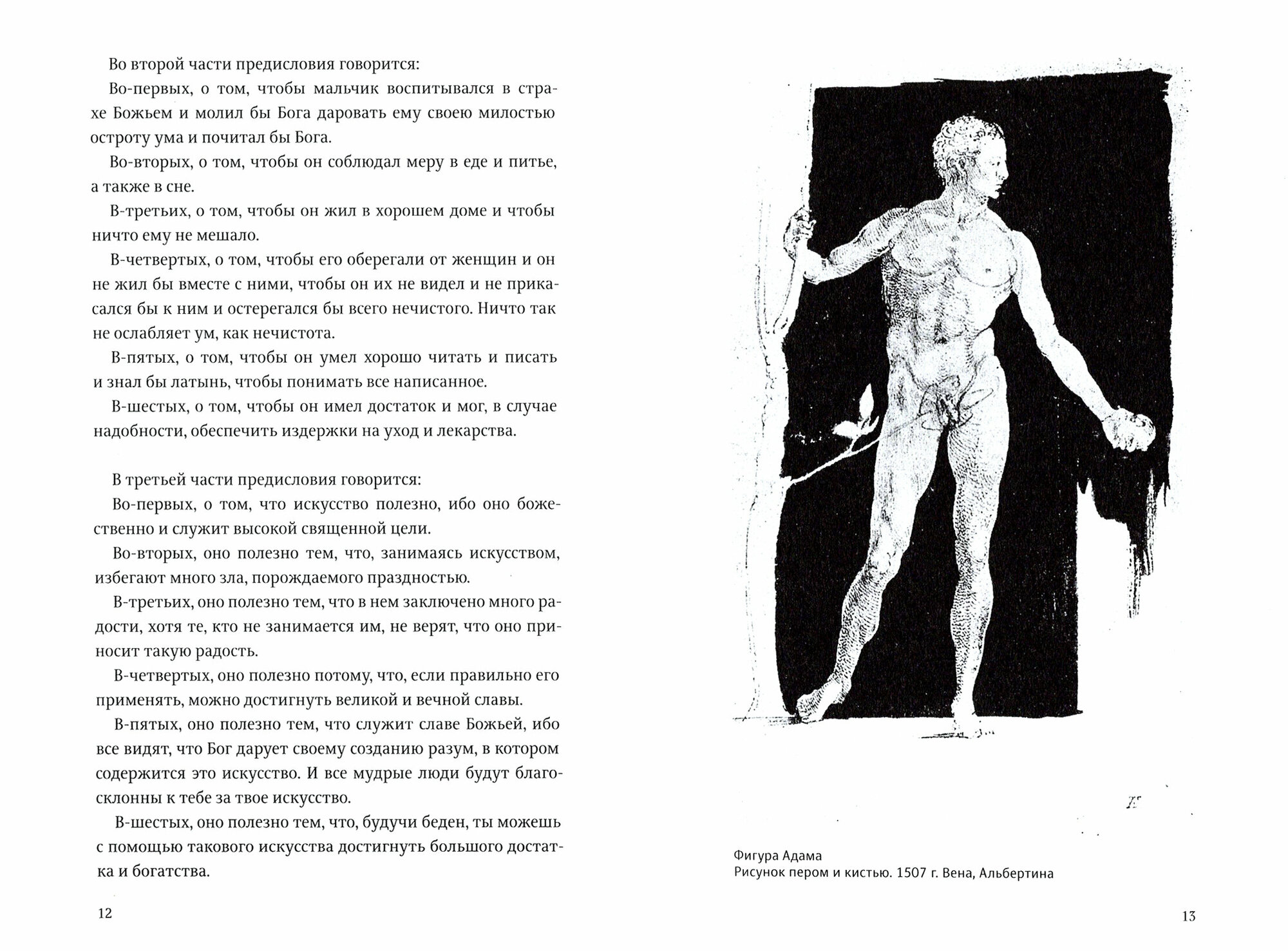 В книгу вошли выдержки из теоретических трудов великого немецкого живописца и графика Альбрехта Дюрера - трех печатных трактатов и рукописных набросков к ним. В оригинале трактаты Дюрера весьма обширны и в значительной мере носят специальный характер, а также изобилуют повторениями. Составители данного сборника старались подбирать материал таким образом, чтобы по нему можно было судить и о построении этих трудов, и обо всем круге затронутых в них вопросов, и о методе изложения, и, прежде всего, о взглядах Дюрера на искусство. Кроме текстов издание содержит репродукции гравюр, рисунков и чертежей Дюрера.