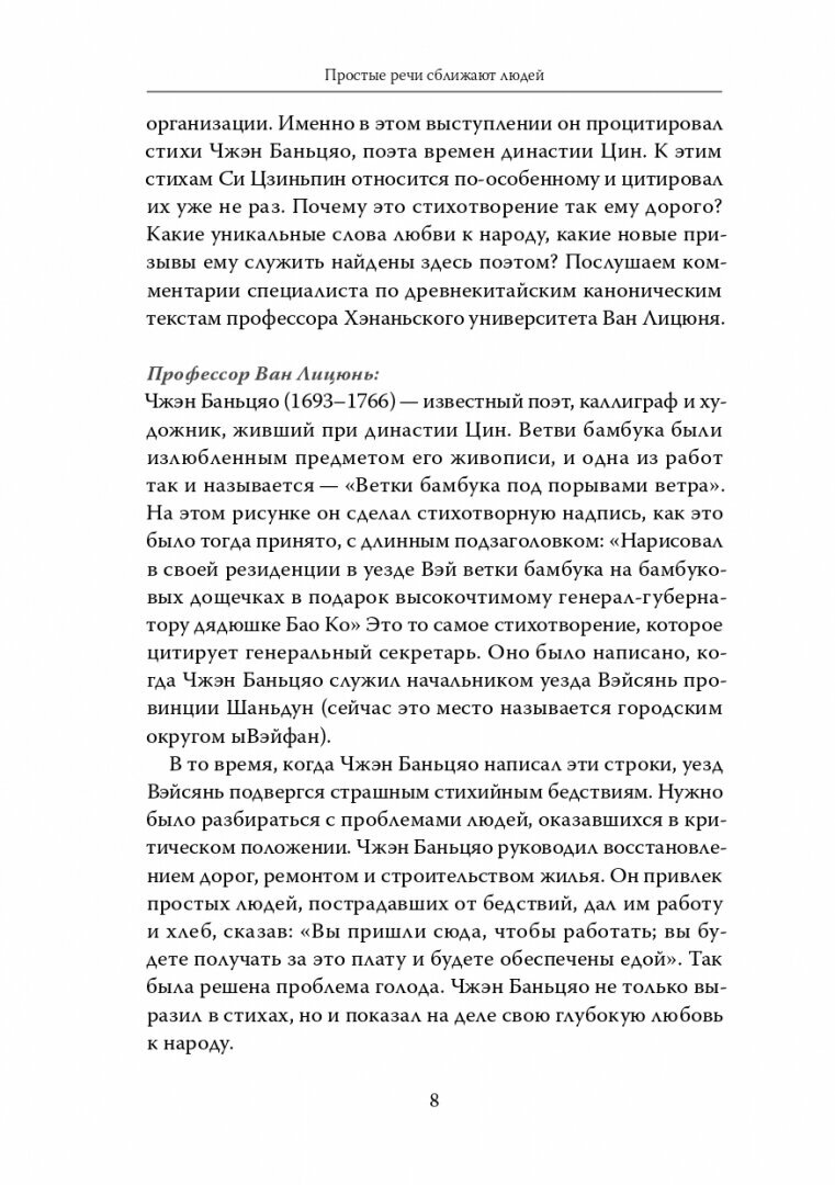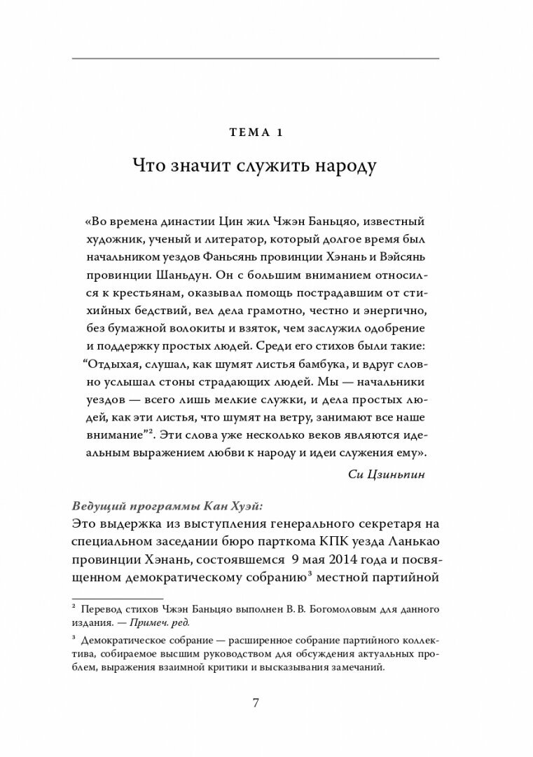 Очередная книга в рамках серии "Читая Си Цзиньпина" представляет собой расшифровку цикла программ, показанного на Центральном телевидении Китая в 2018 году. Темы программ определялись обращением генерального секретаря ЦК КПК Си Цзиньпина к различным аспектам культурного наследия Китая. В каждом выпуске ученые, специалисты и приглашенные гости анализируют выступления и статьи китайского лидера, содержащие фрагменты канонических текстов традиции. Издание предназначено для всех, интересующихся современным Китаем и национальными формами идеологической работы.
