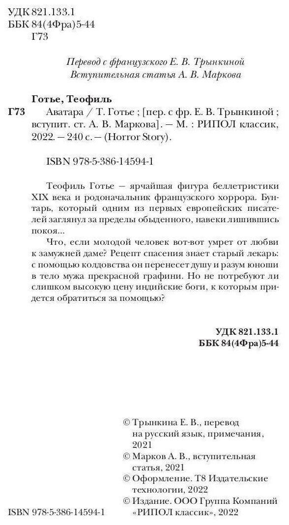 Книга: Аватара (Теофиль Готье); РИПОЛ Классик, 1856
