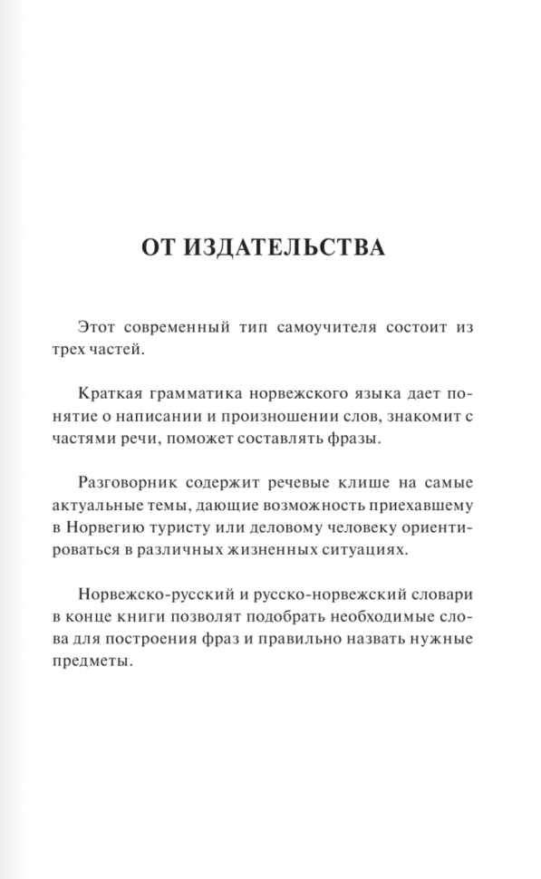 Хотелось бы мне произвести анализ данной книги с самоучителями других авторов, но, увы, мне не с чем сравнивать)) Да и сейчас я считаю, что в нашу информационную эру изучение языка по книге не столь актуально. По поводу самой книги скажу, что всё, что изложено в описании, соответствует действительности. Данный самоучитель является хорошим пособием для быстрого первоначального ознакомления с Норвежским языком. При поездке в Норвегию обязательно бы взял книжку с собой на случай внезапной пропажи Интернета. Она бы очень сильно пригодилась, ведь здесь есть фразы, которые однозначно понадобятся для коммуникации с местным контингентом.