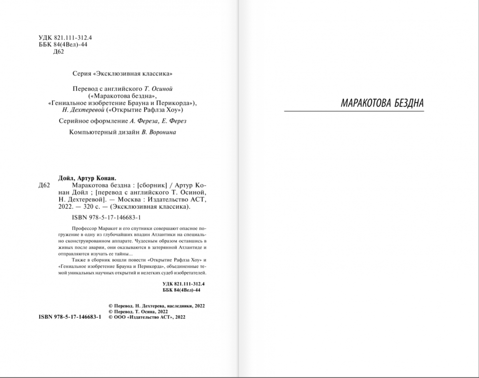 Книга: Маракотова бездна (Артур Конан Дойл); Издательство АСТ, 2022