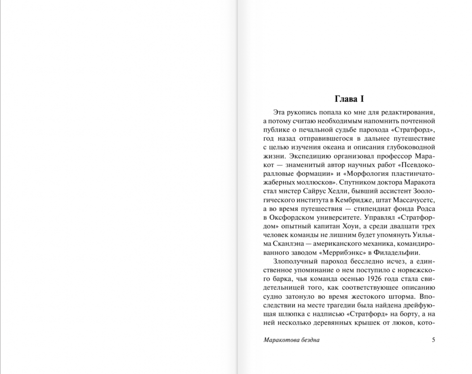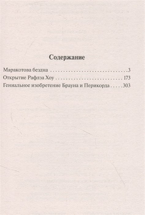 Книга знаменитого французского писателя Артура Конона Дойла включает в себя две повести и один рассказ : "Маракатова Бездна", " Открытие Рафалза Хоу", "Гениальное изобретение Брауна и Перикорда".Печать издания хорошая, бумага газетная, но довольно добротная, приятная на ощупь. В целом книгу приятно держать в руках. Сине-голубой фон на обложке завораживает. Корешок книги твёрдый.