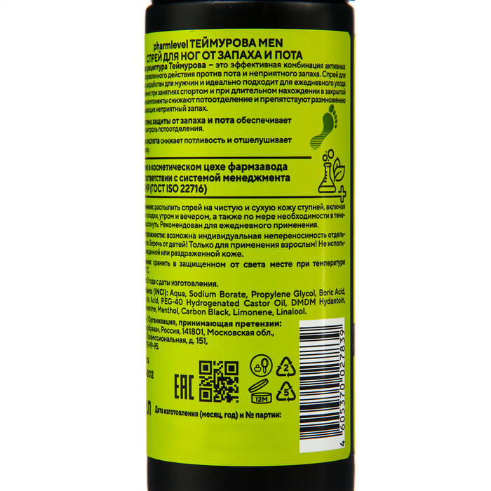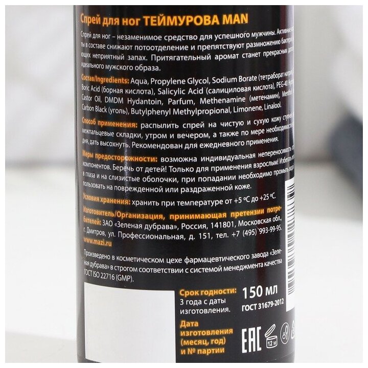 Спрей для ног Теймурова Man от запаха и пота 150мл