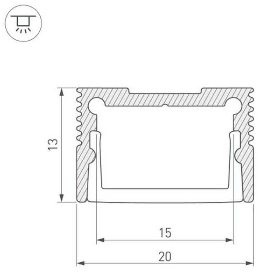 Накладной профиль из анодированного алюминия для основного и дополнительного освещения интерьера. Габаритные размеры профиля составляют 3000 мм в длину, 20 мм в ширину и 13 мм в высоту. Площадка для установки светодиодных лент позволяет использовать ленту шириной до 15 мм и мощностью до 17 Вт/м. Это обеспечивает гибкость в выборе светодиодных лент и создает потрясающие световые решения. Отличное решение для создания современных световых проектов.