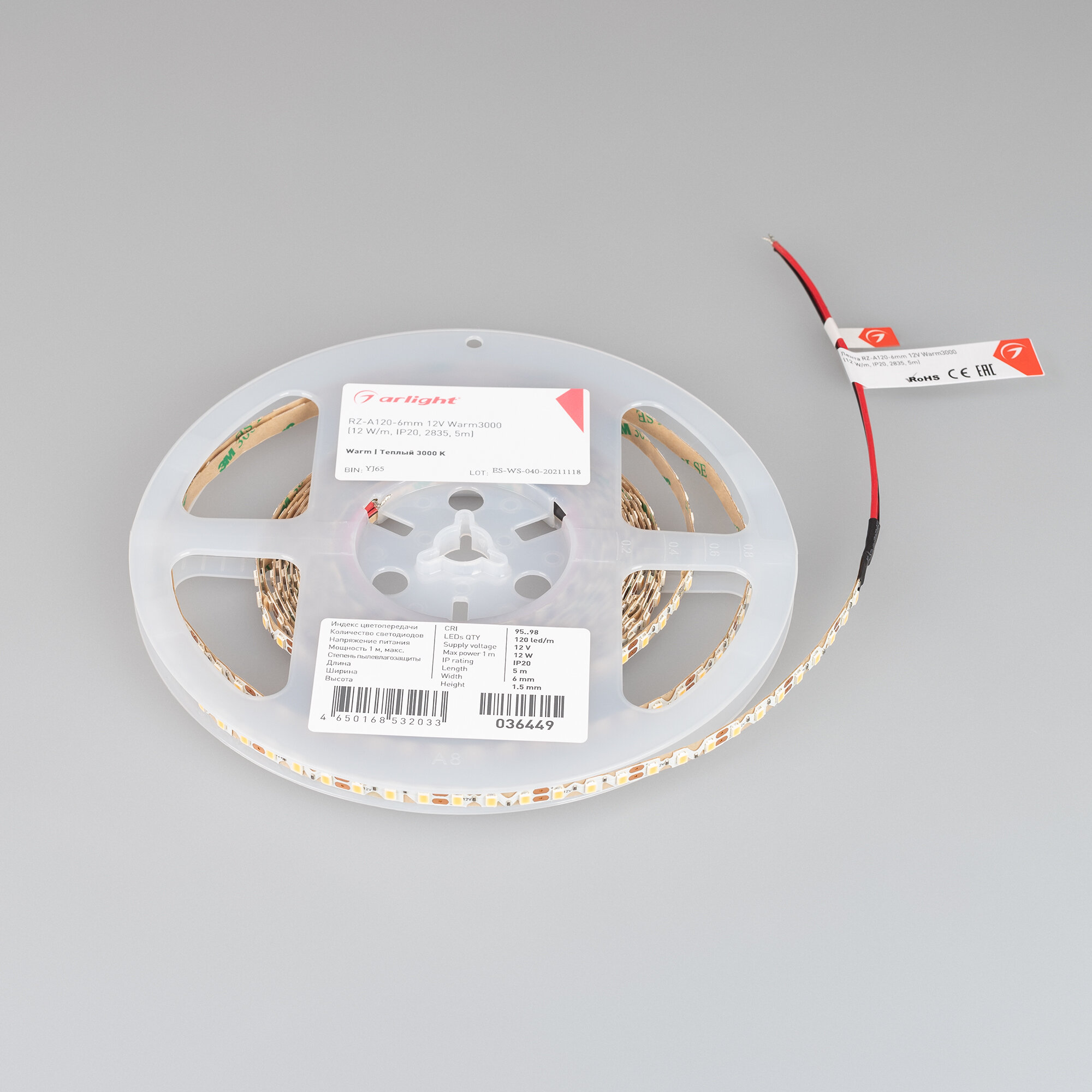 | Дополнительные характеристики | Цена указана за 1м, продается кратно 5 м; RZ-A120-6MM 12V WHITE6000 (12 W/M, IP20, 2835, 5M) (ARLIGHT, 12 ВТ/М, IP20) 120 LED НА 1М |