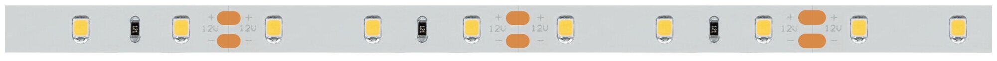 Светодиодная лента RT-A60, открытая. Светодиоды 2835, 60 шт/м (300 шт на 5 м), белая плата, ширина 8 мм, скотч 3M. Цвет ТЁПЛЫЙ 2400 K, цветопередача CRI>85, угол 120°. Питание 12V, мощность 7.2 Вт/м (36 Вт на 5 м). Размеры 5000x8x1.5 мм. Мин. отрезок 50 мм, 3 светодиода. Цена за 1 м.