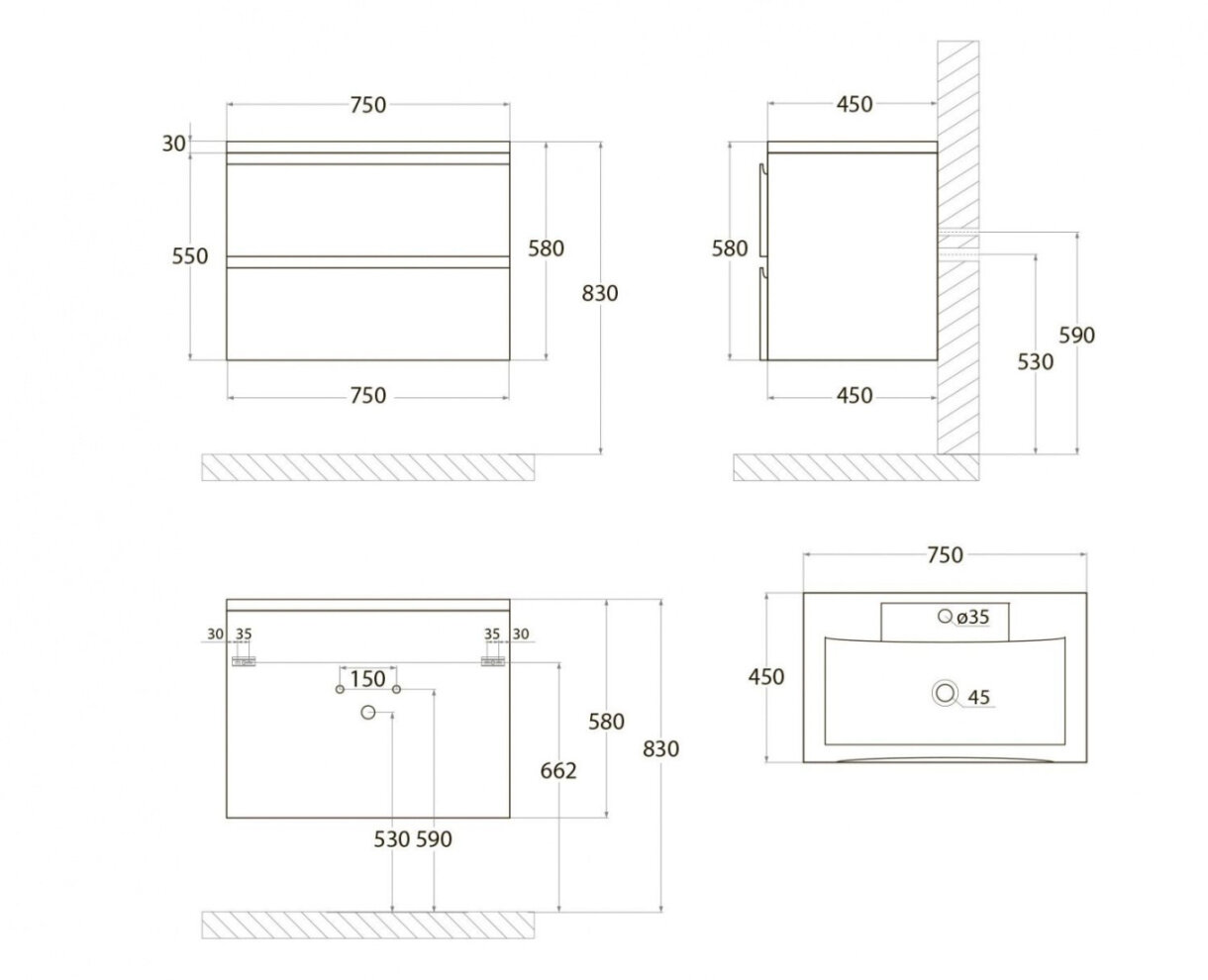 Тумба для комплекта Art&Max Bianchi 75 подвесная белый матовый AM-Bianchi-750-2C-SO-BM