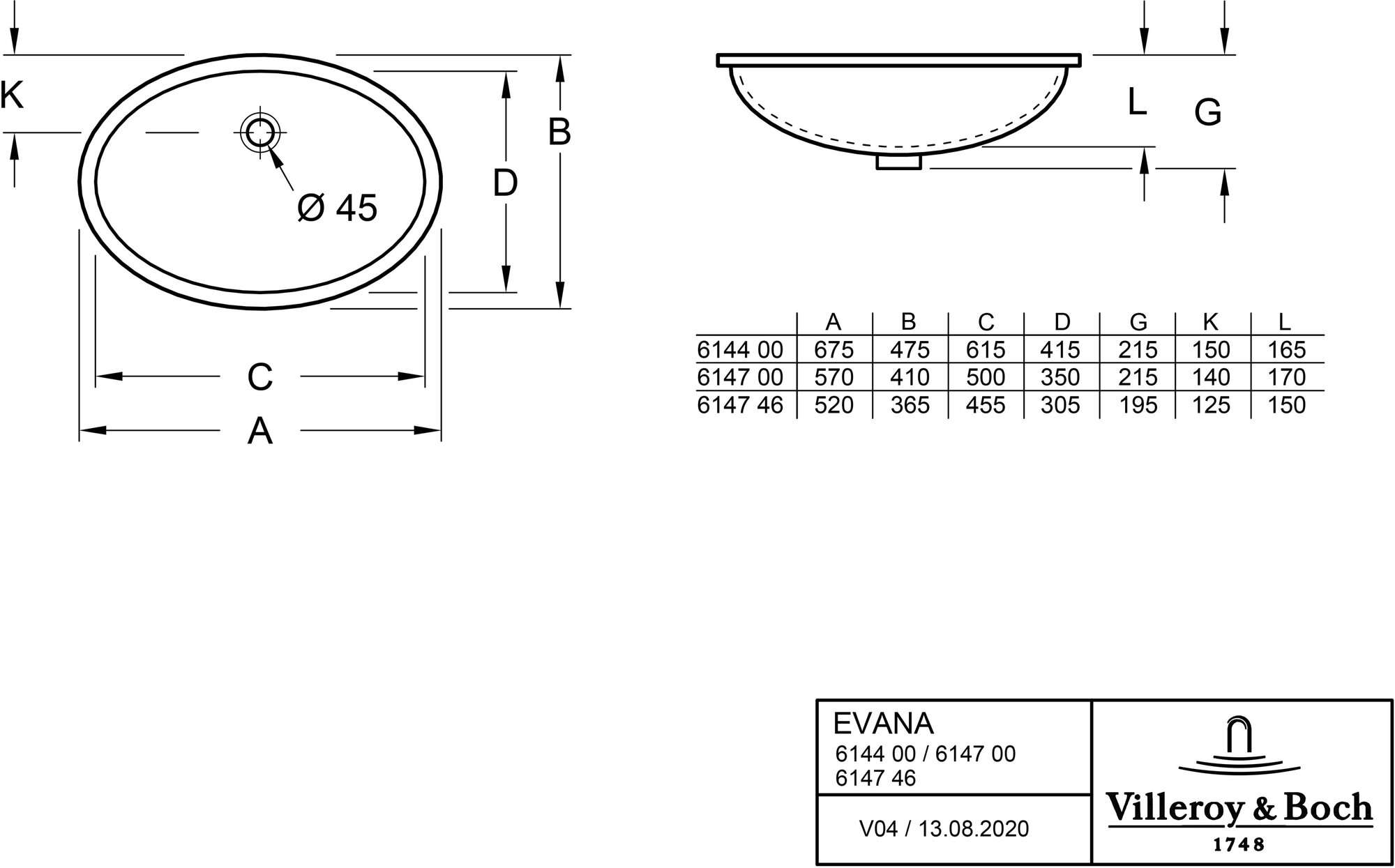 Villeroy boch Evana undercounter washbasin 61440001 раковина под столешницу виллерой бош евана