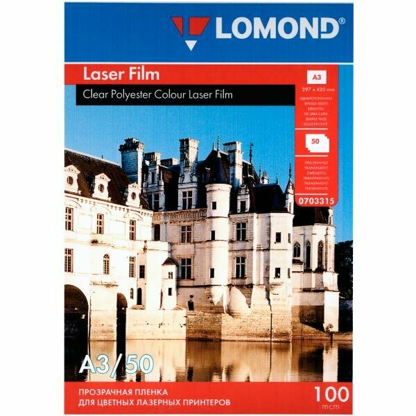Полиэстеровая прозрачная пленка Laser film Lomond 0703315 формата A3 для цветных лазерных принтеров с сухим тонером и нормальным температурным режимом. Применяется для изготовления цветных слайдов фотографического качества, архивных документов и цветоделенных оригинал-макетов, содержащих полутона. Пленка термостабилизирована, антистатична. Обеспечивает превосходную контрастность и четкость изображения с разрешением до 2880 dpi и реалистичную цветопередачу. Отлично держит тонер. При печати не распространяет токсичных испарений. Перед загрузкой пленки в лоток необходимо пролистать стопу. Чтобы предохранить изображение на пленке от загрязнения и отпечатков пальцев, хранить готовые пленки рекомендуется в прозрачных ацетатных конвертах.