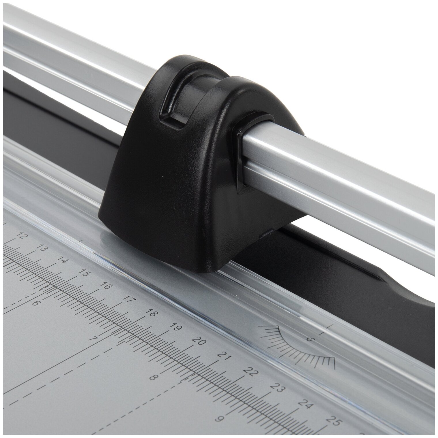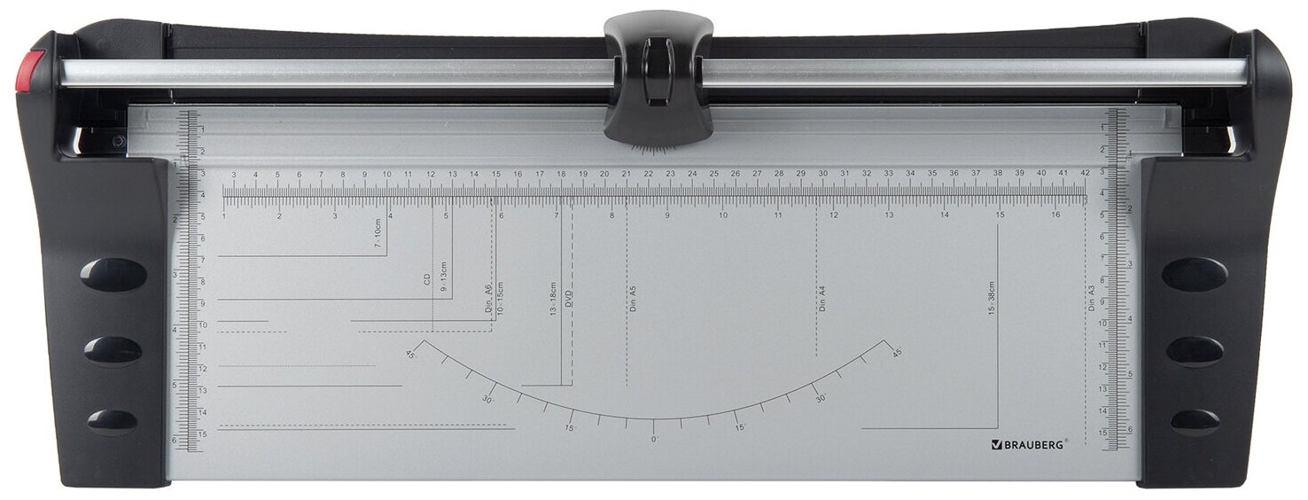 Резак роликовый BRAUBERG можно использовать для нарезки листов офисной бумаги различного формата. Максимальный формат — А3 (297×420 мм). Оснащен острым стальным лезвием с длиной реза 480 мм. Выполняет ровную прямую резку бумаги. Максимальное количество одновременно разрезаемых листов — 10 шт. Корпус резака изготовлен из качественного металла. Вдоль линии реза нанесена шкала с миллиметровыми, дюймовыми делениями и градусной сеткой, которая обеспечит необходимую точность нарезки бумаг. На корпусе резака также нанесен международный немецкий стандарт DIN A3, DIN A4, DIN A5, DIN A6, который обеспечит дополнительную аккуратность и точность при работе с резаком.