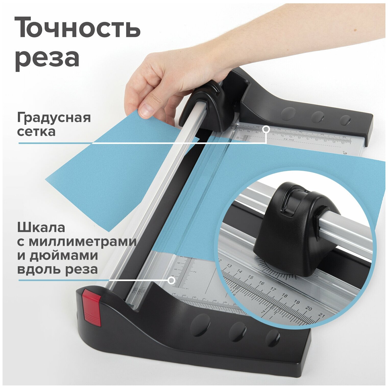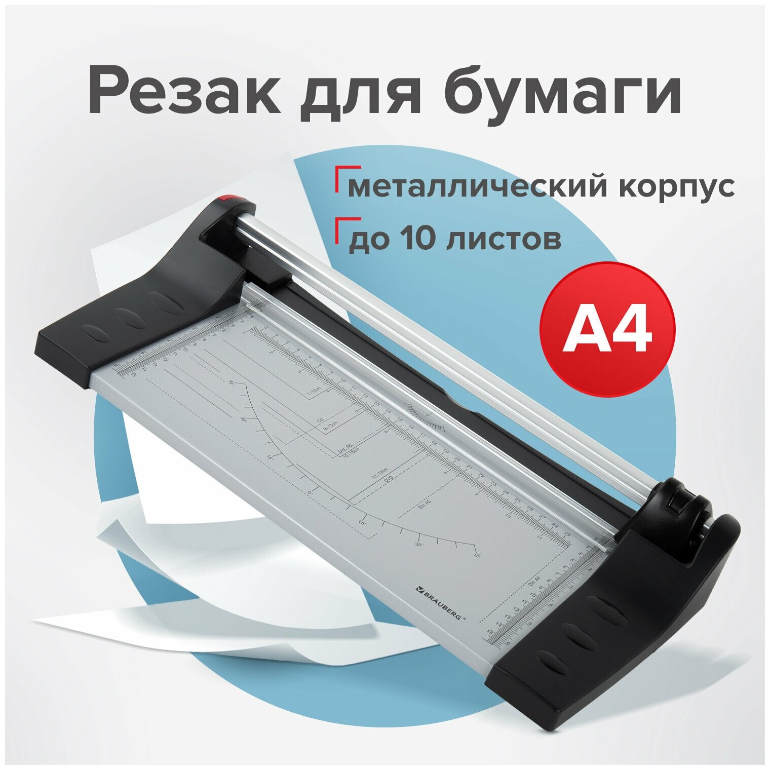 Роликовый резак для бумаги BRAUBERG может использоваться в офисах, учебных заведениях, фотомастерских для работы с документами и фотографиями, а также дома для хобби и творчества. Позволяет одновременно разрезать до 10 бумажных листов формата А4.
