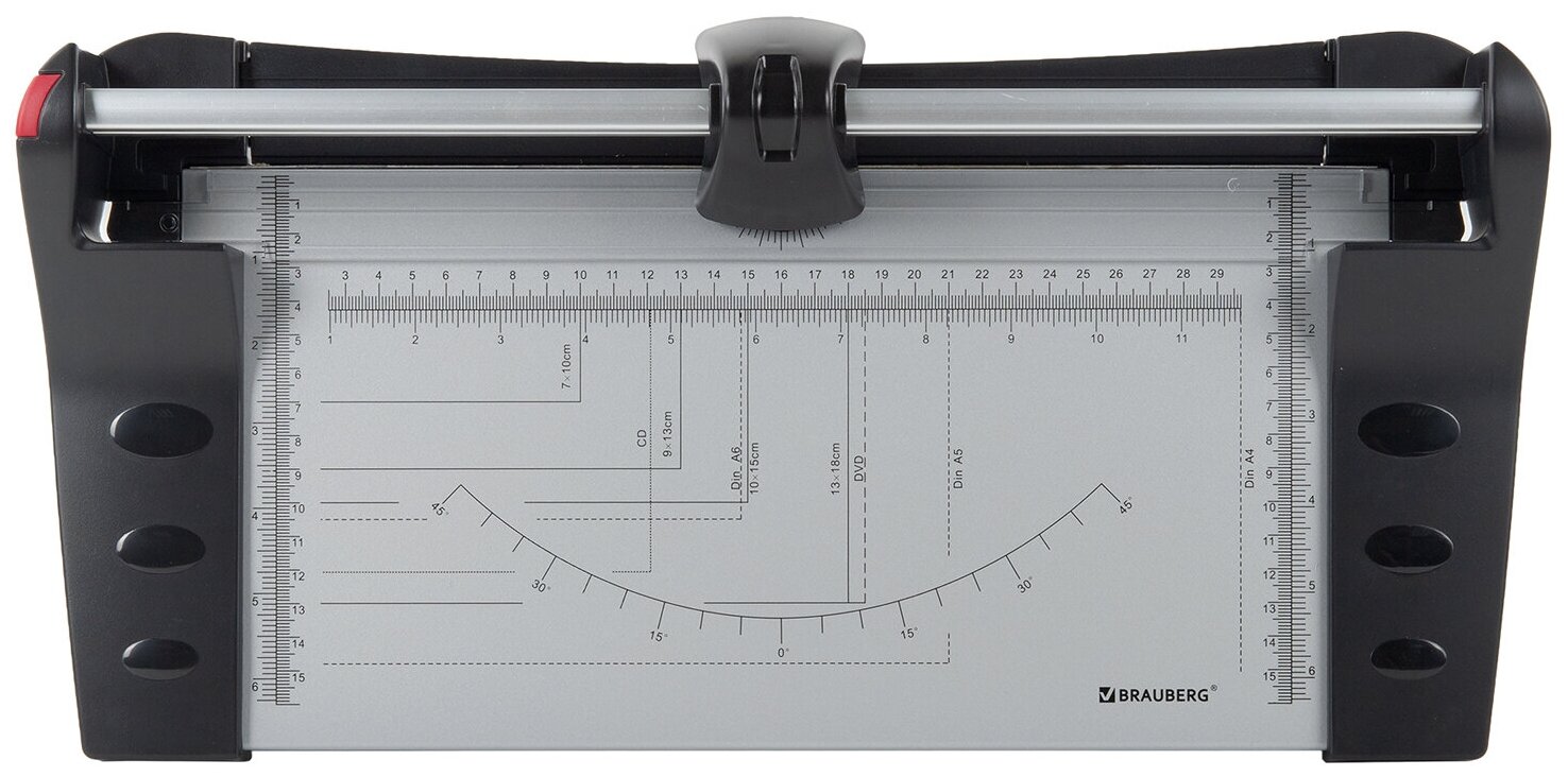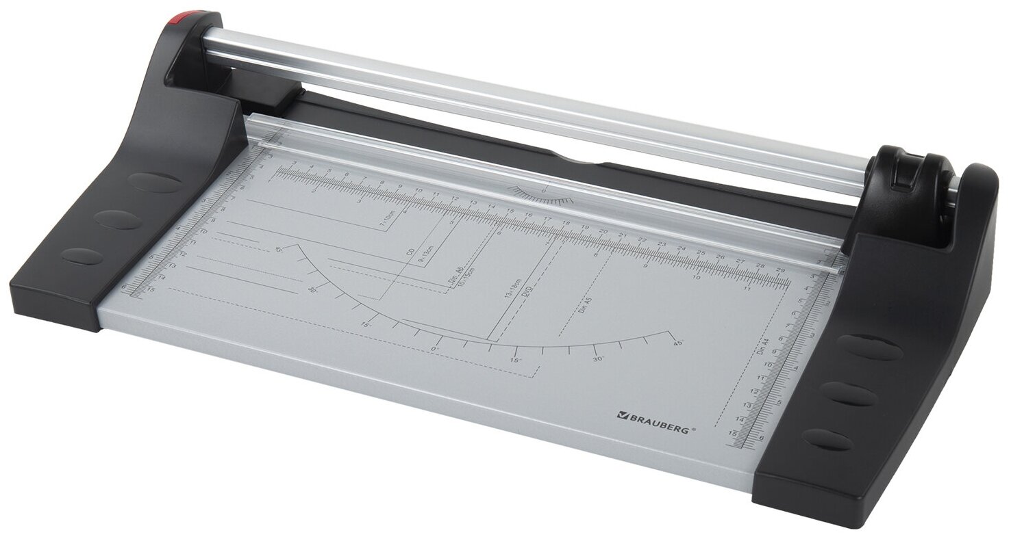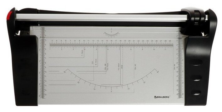 Резак роликовый BRAUBERG можно использовать для нарезки листов офисной бумаги различного формата. Максимальный формат — А4 (210х297 мм). Оснащен острым стальным лезвием с длиной реза 320 мм. Выполняет ровную прямую резку бумаги. Максимальное количество одновременно разрезаемых листов — 10 шт. Корпус резака изготовлен из качественного металла. Вдоль линии реза нанесена шкала с миллиметровыми, дюймовыми делениями и градусной сеткой, которая обеспечит необходимую точность нарезки бумаг. На корпусе резака также нанесен международный немецкий стандарт DIN A4, DIN A5, DIN A6, который обеспечит дополнительную аккуратность и точность при работе с резаком.
