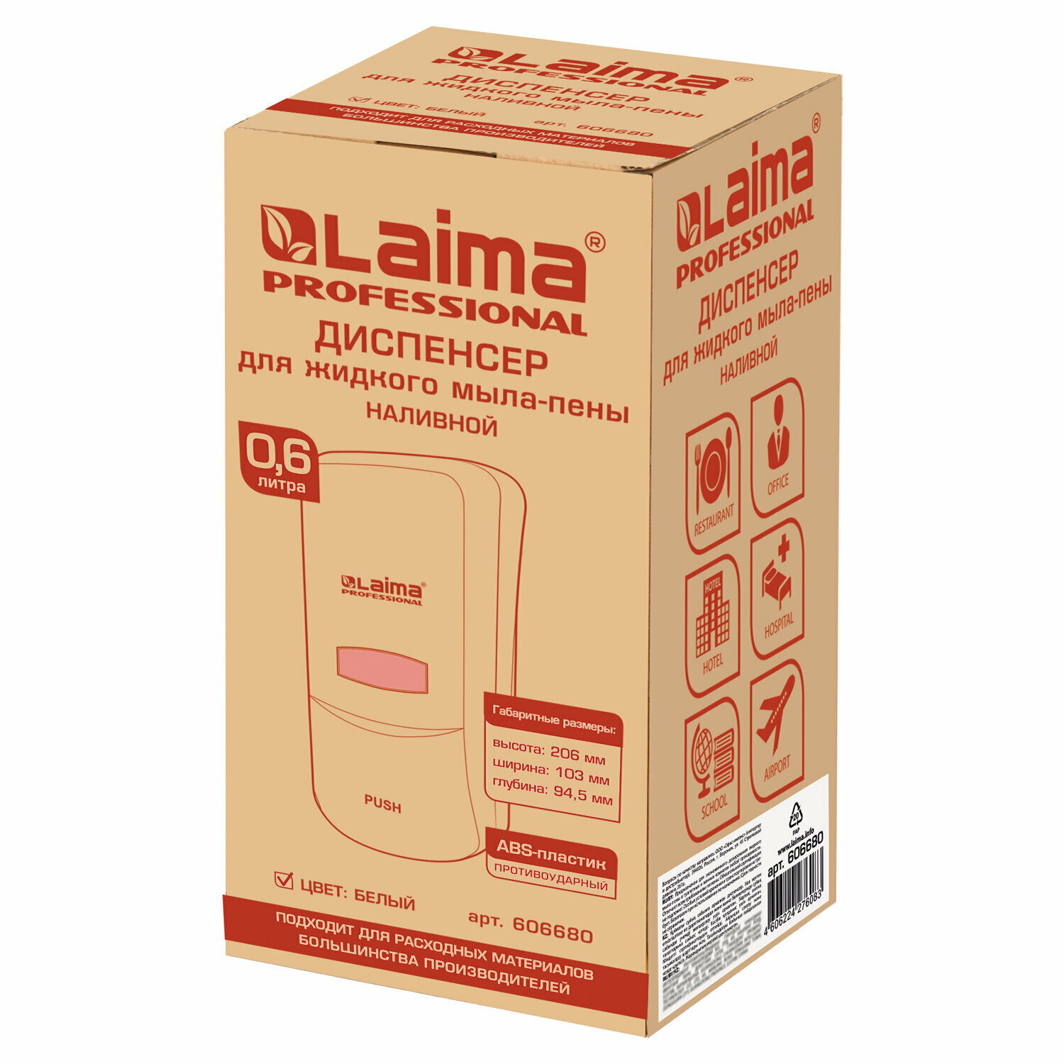 Дозатор для жидкого мыла-пены LAIMA PROFESSIONAL CLASSIC подходит для использования в местах с любой проходимостью, таких как туалетная комната в ресторане, офисе, торговом центре, аэропорту. Отличается высокими эксплуатационными характеристиками.Гигиеническое оборудование давно стало неотъемлемым аксессуаром в уборной любого общественного заведения. Дозатор для жидкого мыла-пены или диспенсер - устройство для порционной выдачи мыла-пены посетителям туалетной комнаты. Объем - 0,6 л. Выдача мыла-пены осуществляется экономичными порциями. Диспенсер сочетается с расходными материалами других производителей. Имеется окно для контроля уровня мыла. В комплект входят крепежные материалы.Преимущества дозатора для жидкого мыла-пены LAIMA PROFESSIONAL CLASSIC:1) Гигиеничность.2) Высокий уровень комфорта для пользователей.3) Антивандальный корпус из ABS-пластика.4) Легкость и простота в эксплуатации.5) Не требует особого ухода.6) Надежность конструкции.Спешите приобрести профессиональное оборудование для сангигиены LAIMA PROFESSIONAL CLASSIC в нашем интернет-магазине!Обзоры 1 Какие виды дозаторов для жидкого мыла бывают? Какой принцип работы у диспенсера для мыла?Соблюдать правила гигиены необходимо не только дома, но и в общественных организациях. Одним из главных условий является - мытье рук. Поэтому сейчас высоким спросом пользуется жидкое мыло и диспенсер.Какие виды устройств бывают?Какой дозатор для жидкого мыла лучше выбрать?Читайте в этом материалеПодробнееОбъем - 0.6 л. Тип диспенсера - наливной для мыла-пены. Артикул - 606680. Серия - CLASSIC_1. Диспенсерная система - нет. Управление - механическое. Индикаторы - окно для контроля уровня мыла. Антивандальный корпус - да. Комплектация - крепежные материалы. Количество режимов дозирования - 1. Сочетается с расходными материалами других производителей - да. Скрытый замок - да. Материал замка - пластик. Материал корпуса - ударопрочный пластик ABS. Цвет корпуса - белый. Ширина - 103 мм. Высота - 205 мм. Глубина - 95 мм. Производитель - Китай Вес с упаковкой - 505 г Размер в упаковке - 10.8x21.2x11.4 см