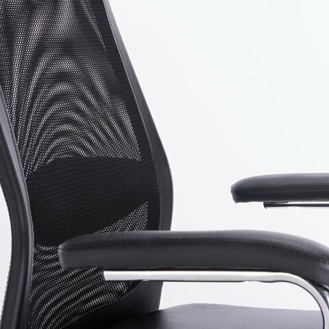 Кресло сочетает обивку из износоустойчивой ткани и сетки. Мебельная ткань на сиденье и подлокотниках обеспечивает длительную эксплуатацию и практичность, а сетчатая спинка способствует естественной циркуляции воздуха.
