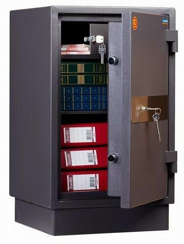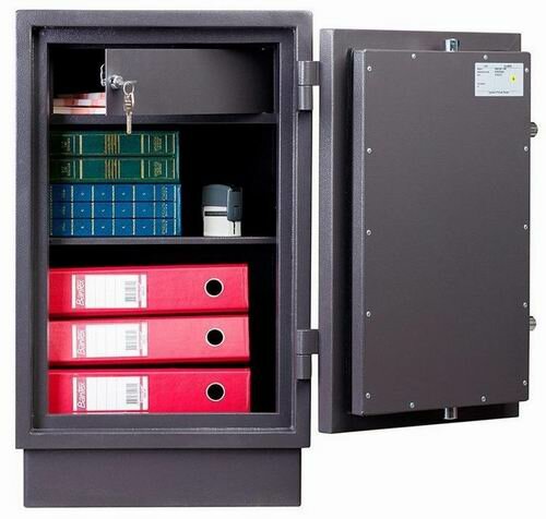 Внутренние размеры предусматривают горизонтальное и вертикальное хранение папок «Корона» при неустановленной полке. Сейф комплектуется ключевым замком KABA MAUER.