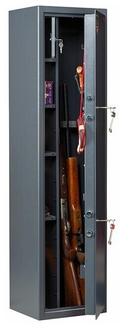 Оружейный сейф Aiko оборудован двумя ключевыми замками. Двери сейфа, изготовленные из металла толщиной 3 мм, имеют внутренние петли.