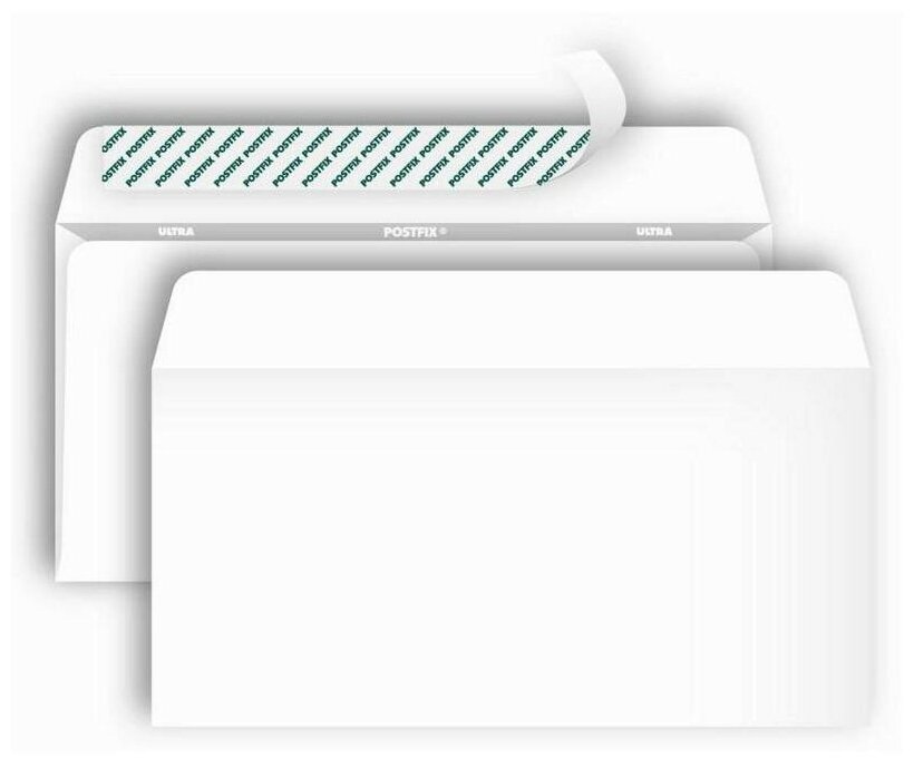 Конверт 110х220 мм Е65 белый 80 г/м2 стрип 1000 шт/уп POSTFIX (269726) (размер: 110x220 мм)